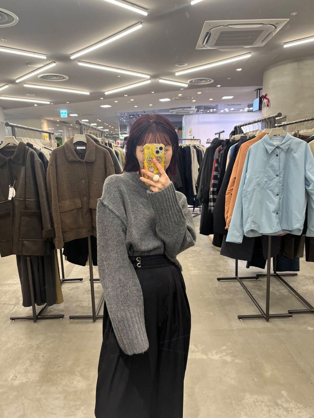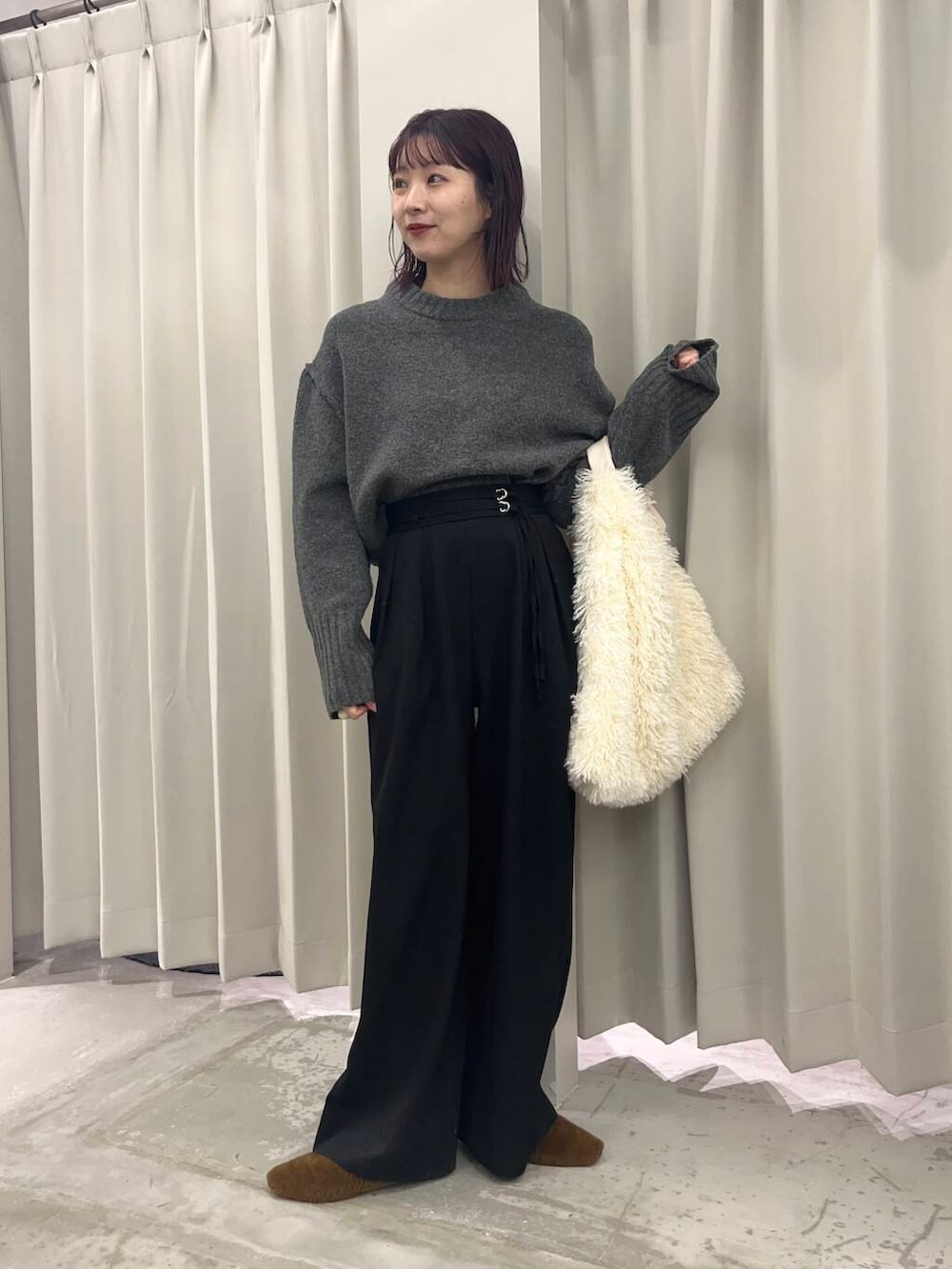 トレンドカラーのグレーニットは