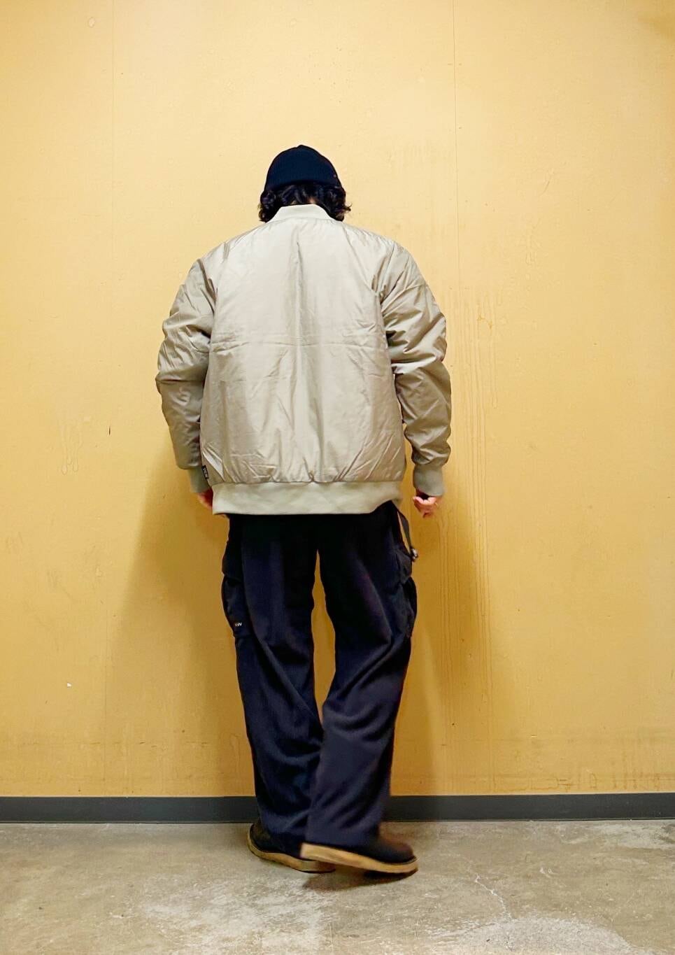 インラインのSTUDIUM DOWN JACKETをベースに、カジュアルに着られるキルト有りの面と、上品な雰囲気で着られるキルト無しの面でリバーシブル仕様に別注。