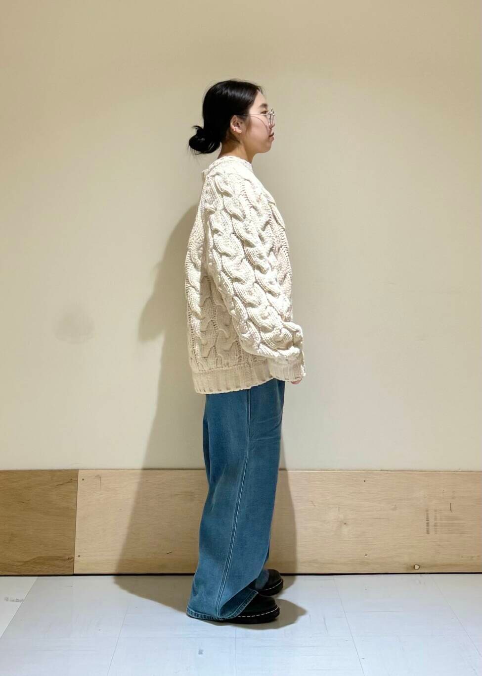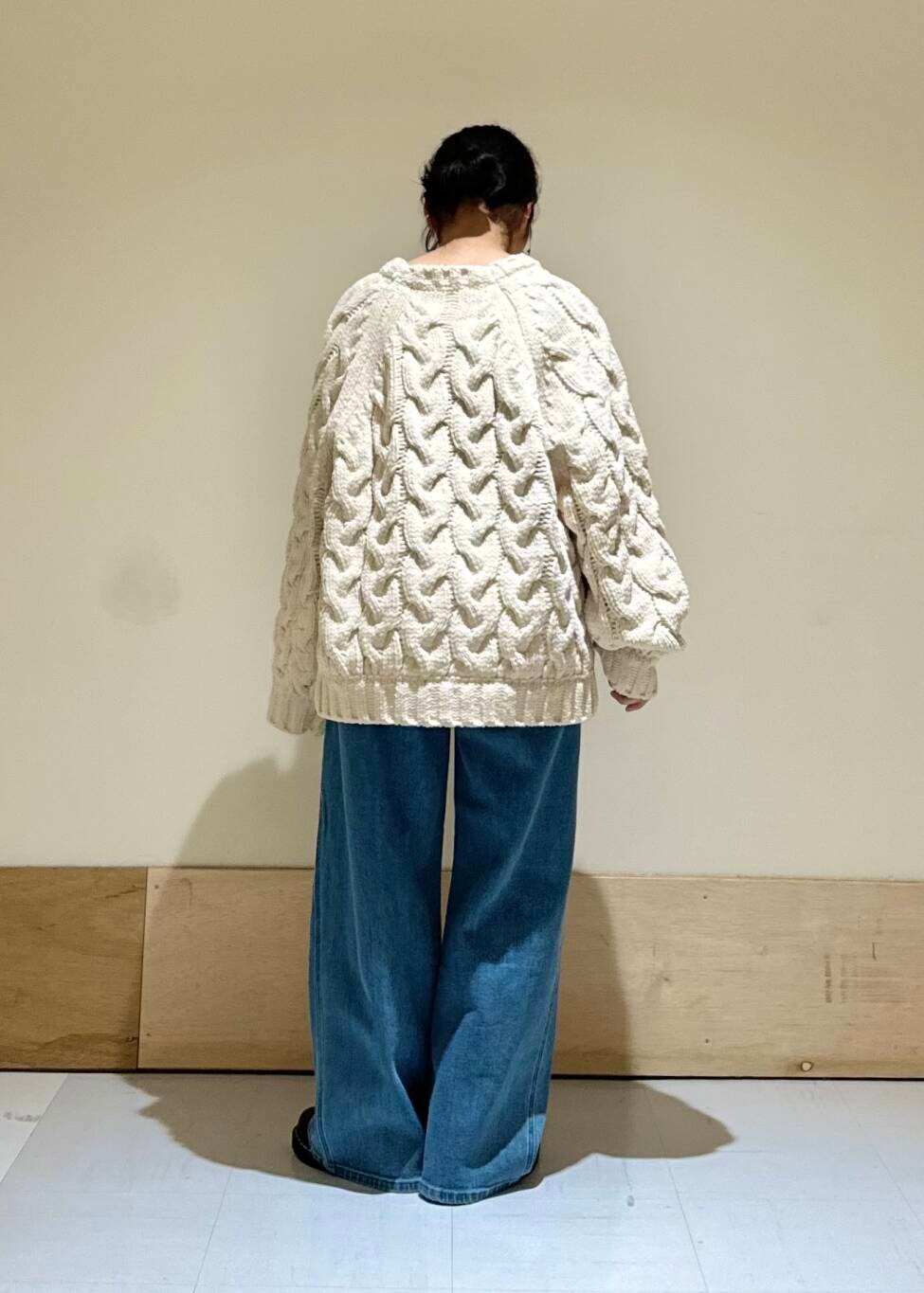 ざっくりニットとシンプルデニムコーデ