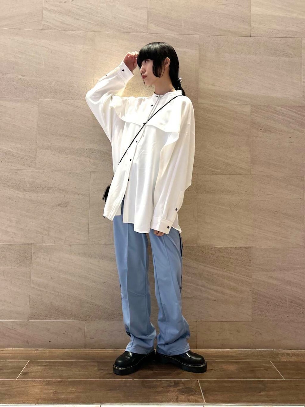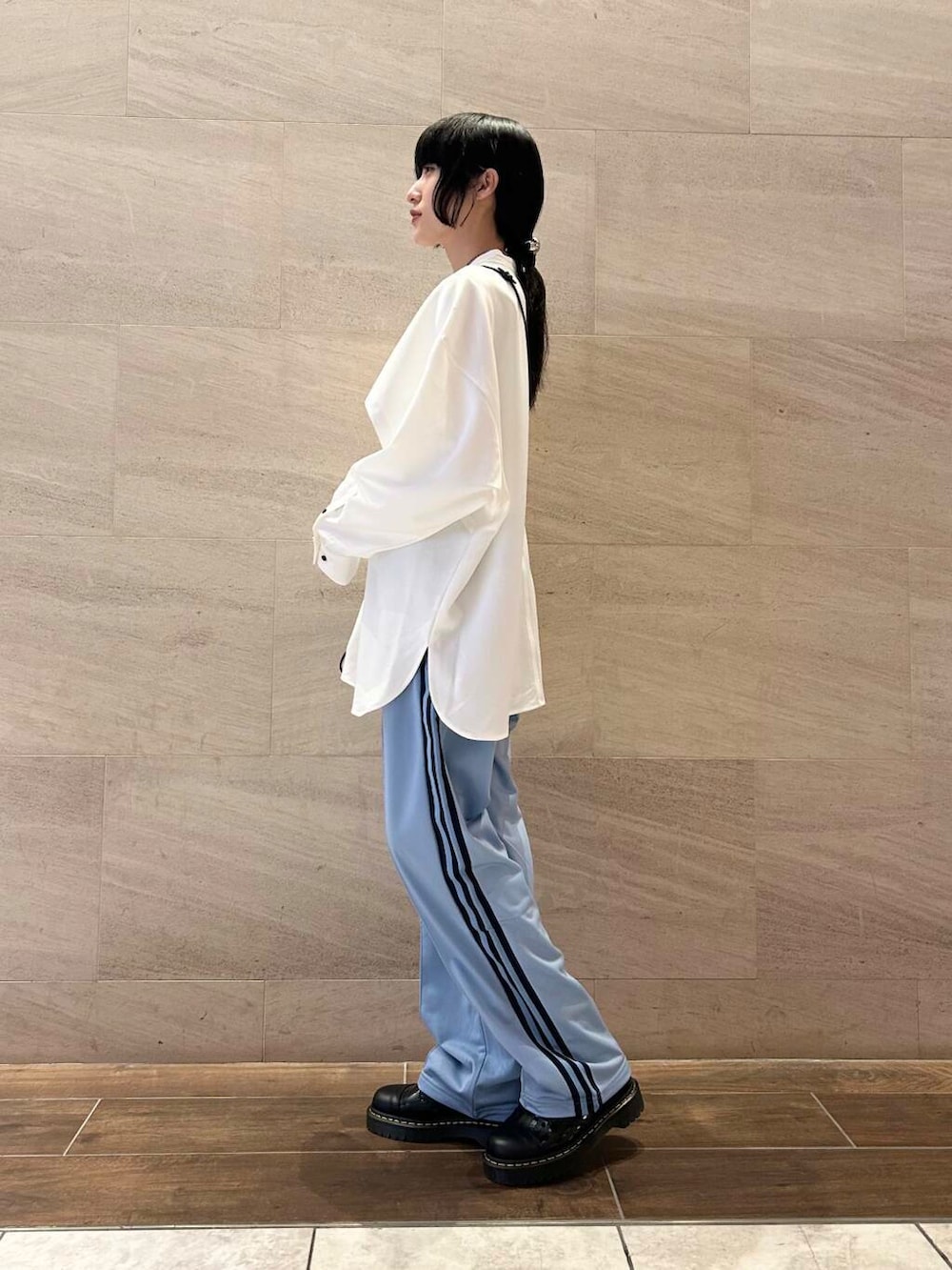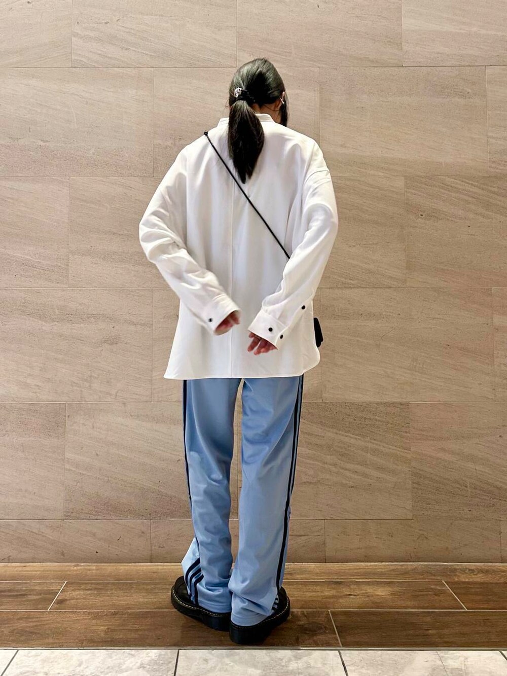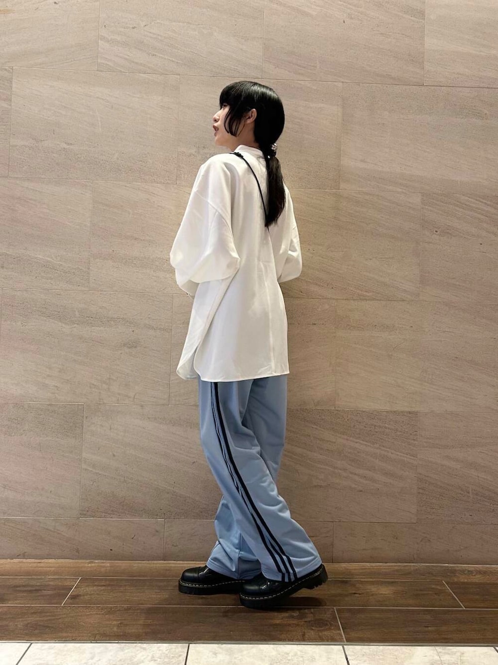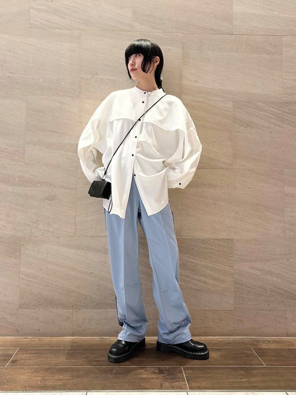 シャツはストンとした着心地で、インナーにタートルネックを合わせても◎