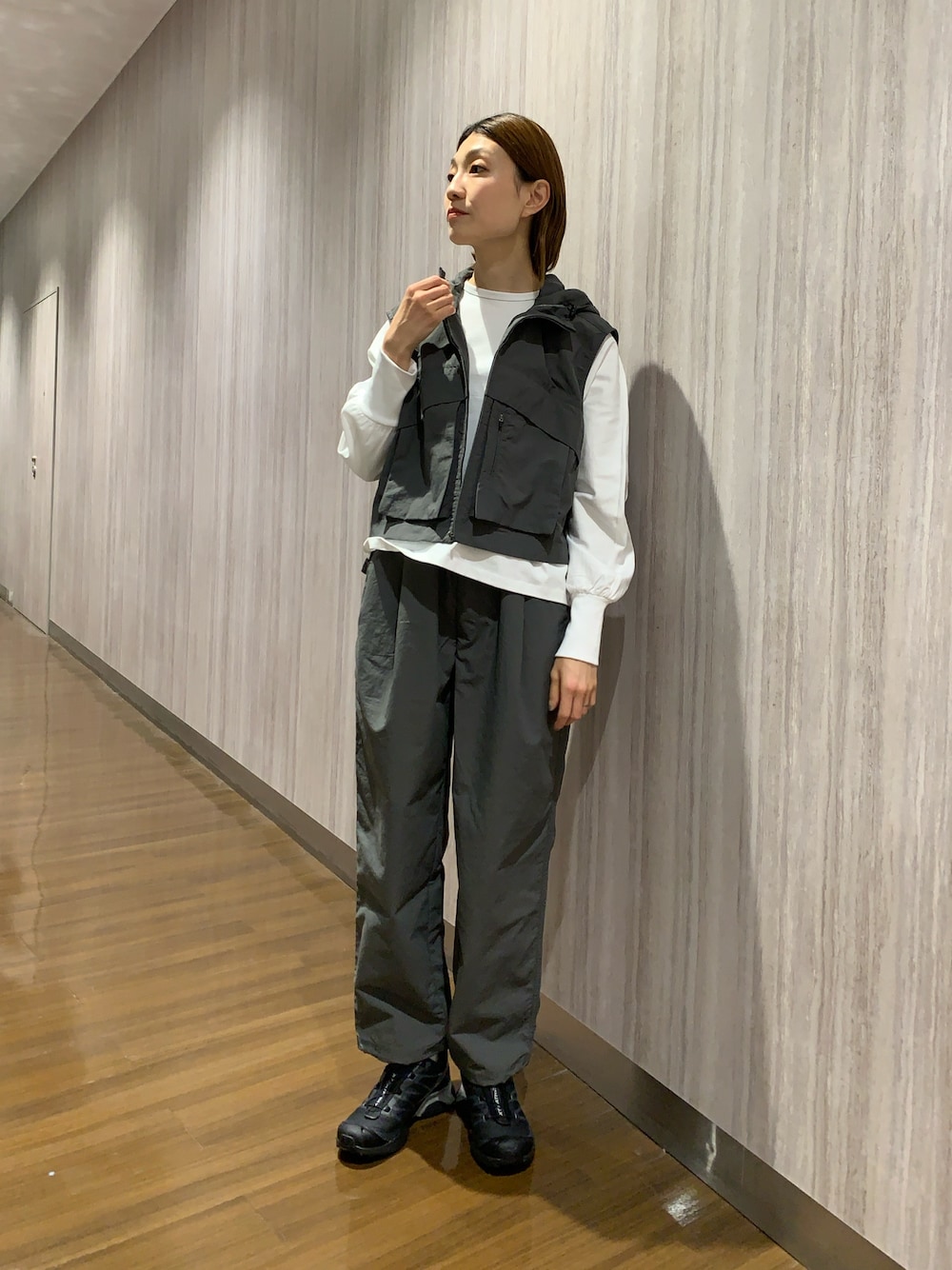 合繊のジャージをニードルパンチで起毛させた素材は、ウール混のような起毛感と柔らかい素材感が特徴。シンプルなクルーネックのプルオーバーですがドロップショルダーで袖にボリュームのあるデザインで袖口と裾にストレッチテープのパイピングを施し、脇ポケットもありますので単品でもスカートとセットアップでも着用できます。