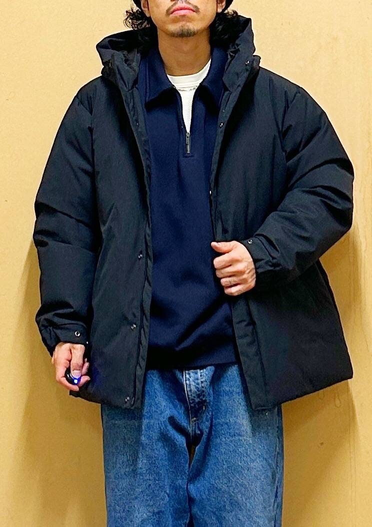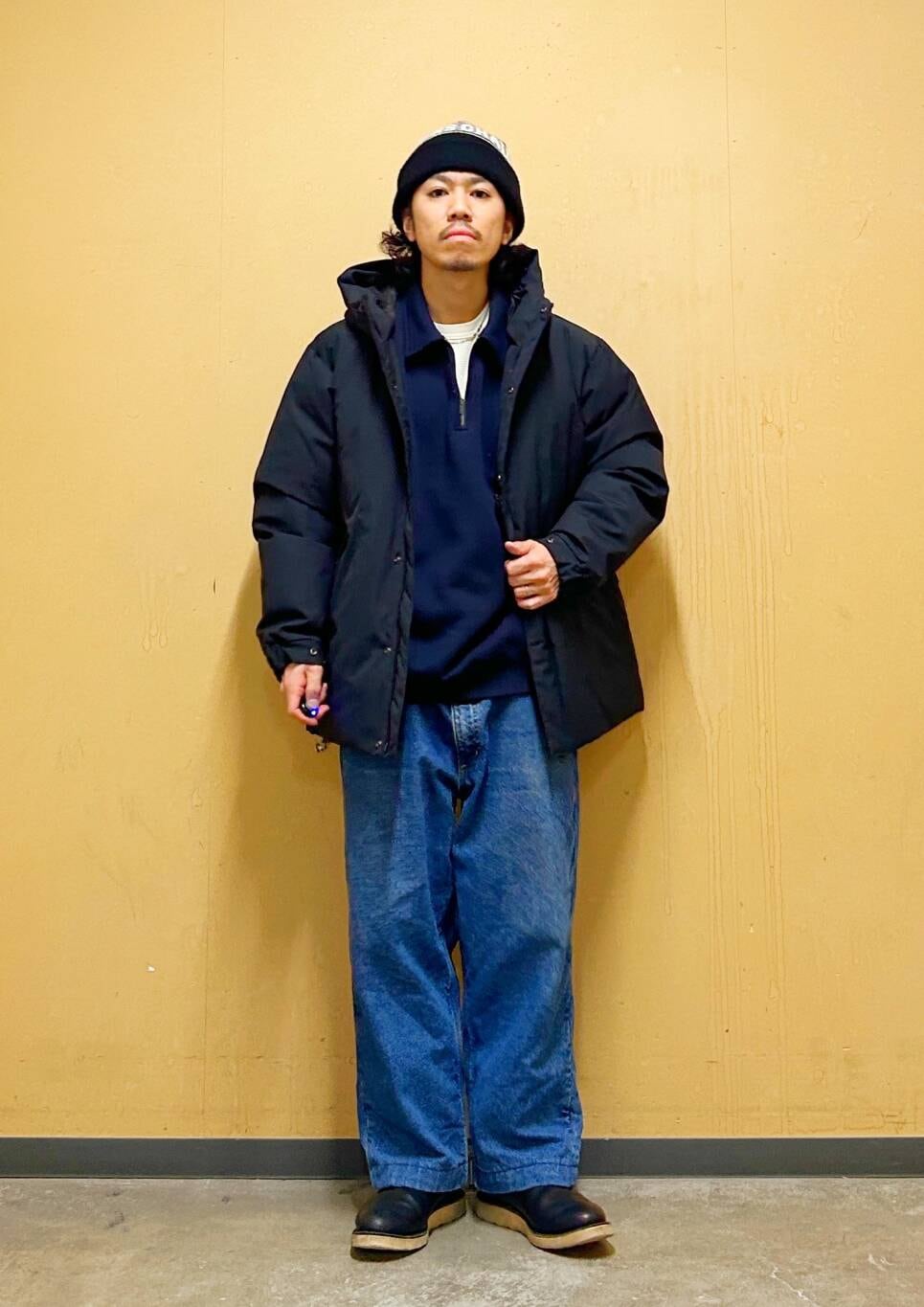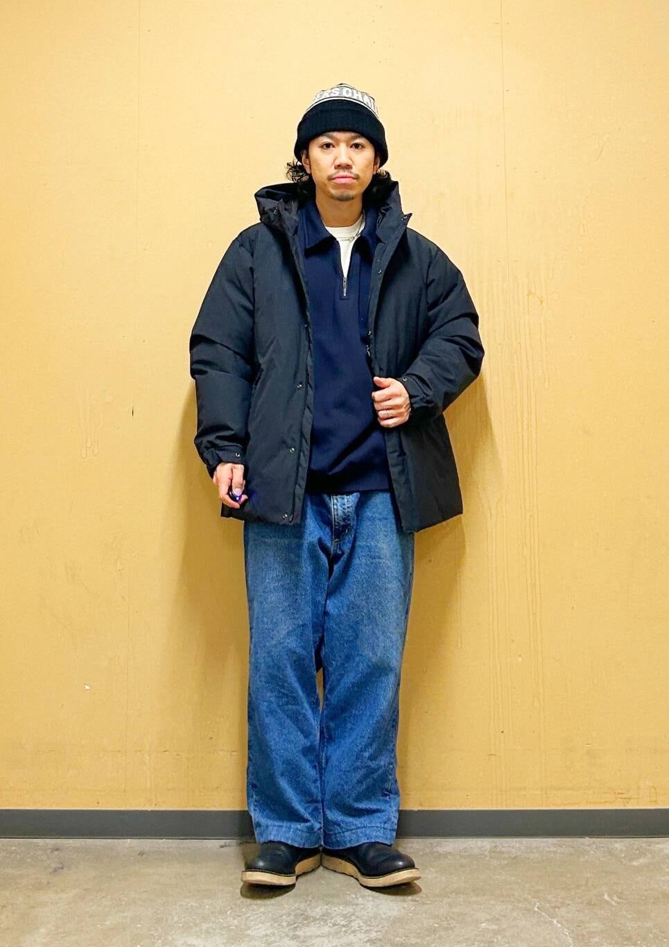 今回はウールブレンドラミネートダウンパーカーとfoxスウェットポロシャツを使用したコーディネート。