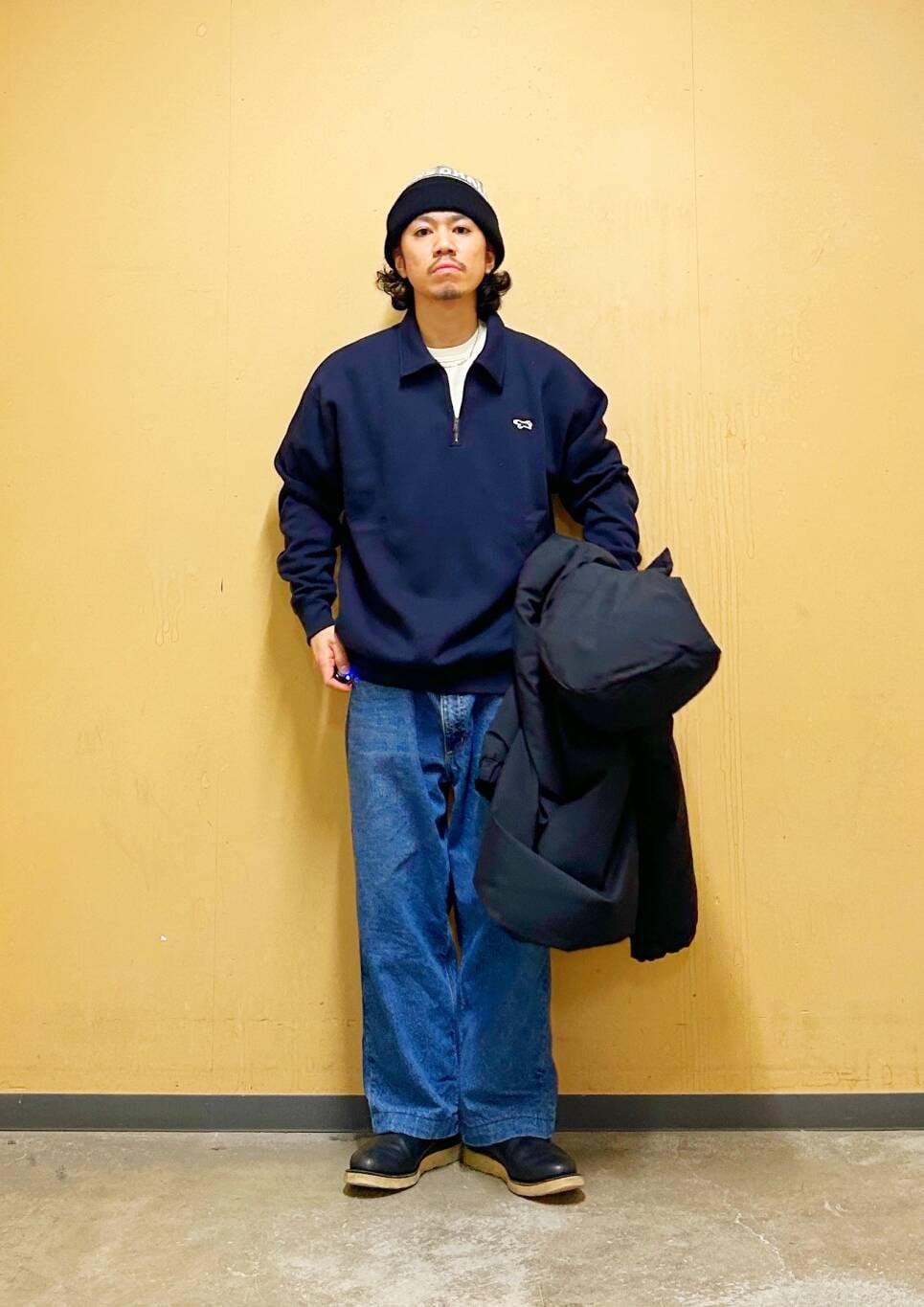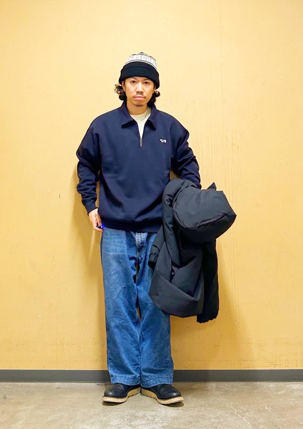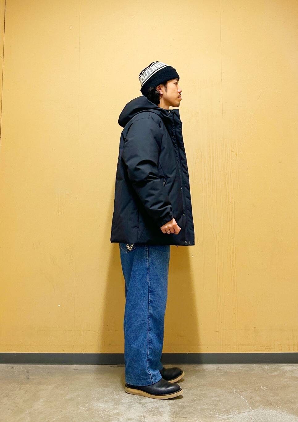 今回はウールブレンドラミネートダウンパーカーとfoxスウェットポロシャツを使用したコーディネート。