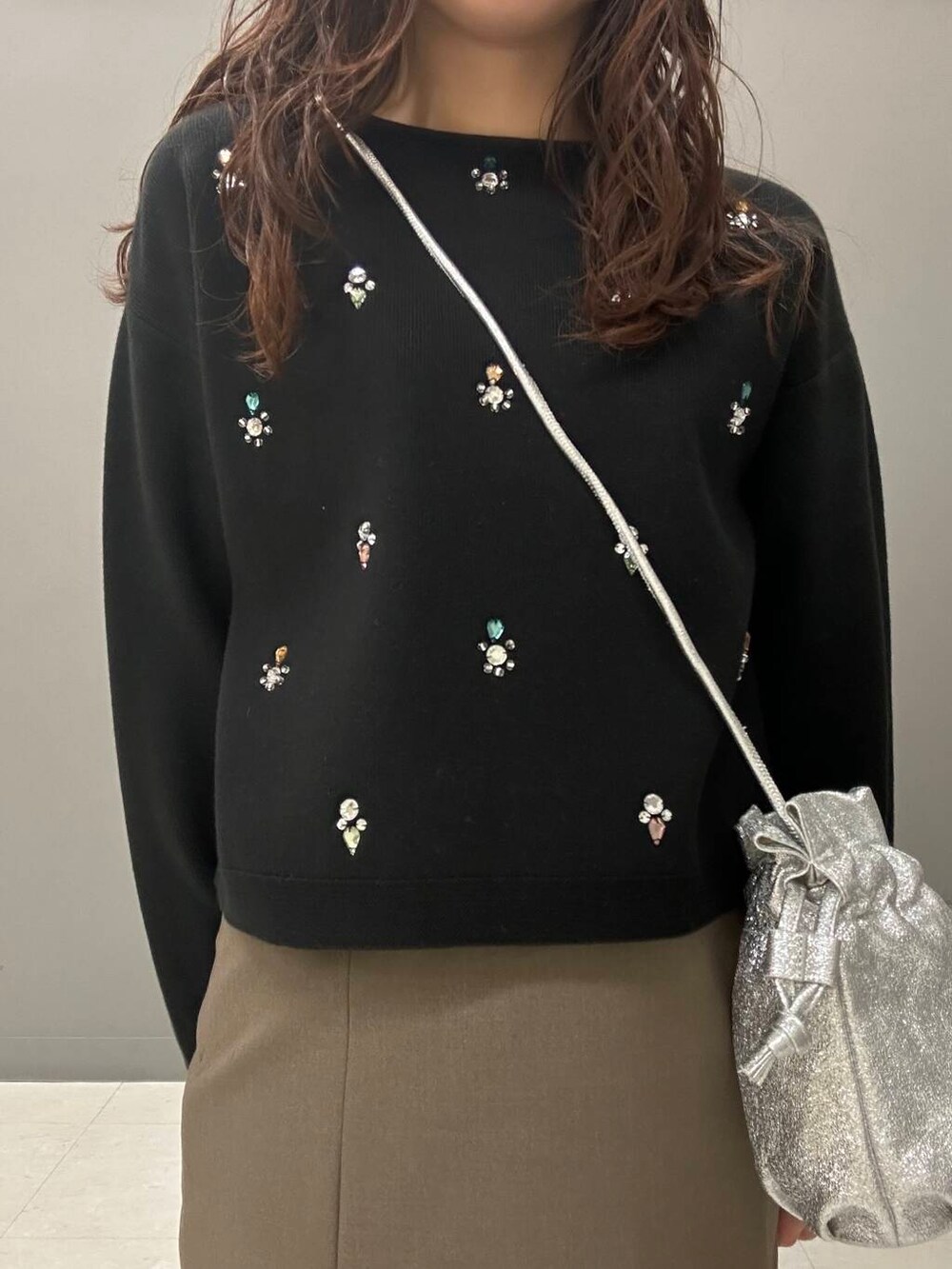 ビジューが施されコーデが華やかになりますが、派手すぎないキラキラ感なのも嬉しいポイントです