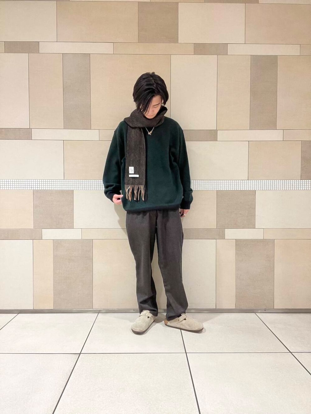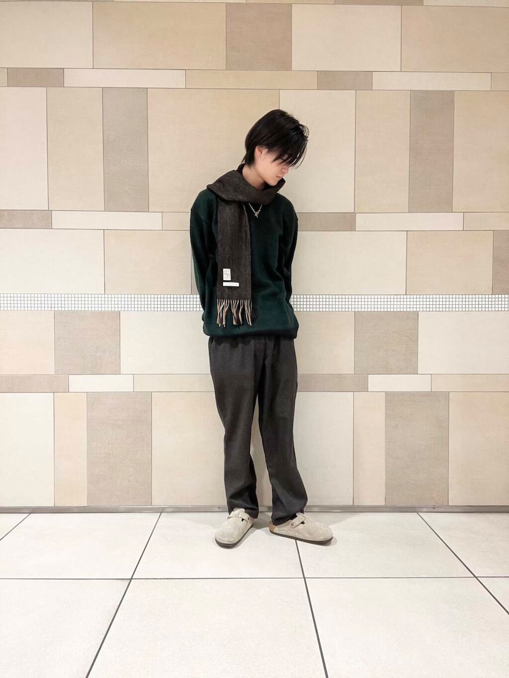 オリジナルのマフラーを使ってラフにコーデを組みました!このマフラーは色々な巻き方ができるのでこなれ感⤴️です!