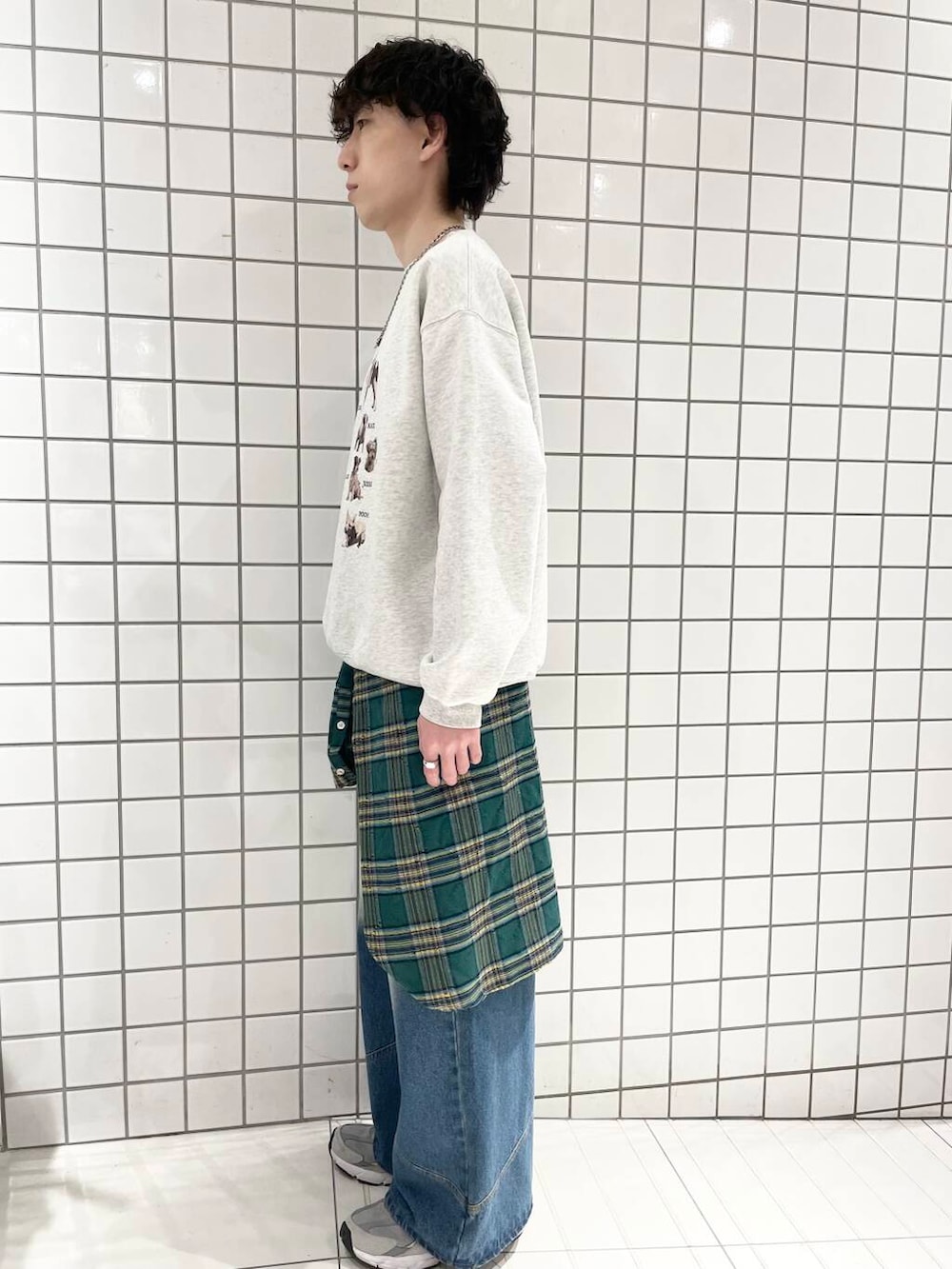SENSE OF PLACEダメージチェックルーズシャツ
