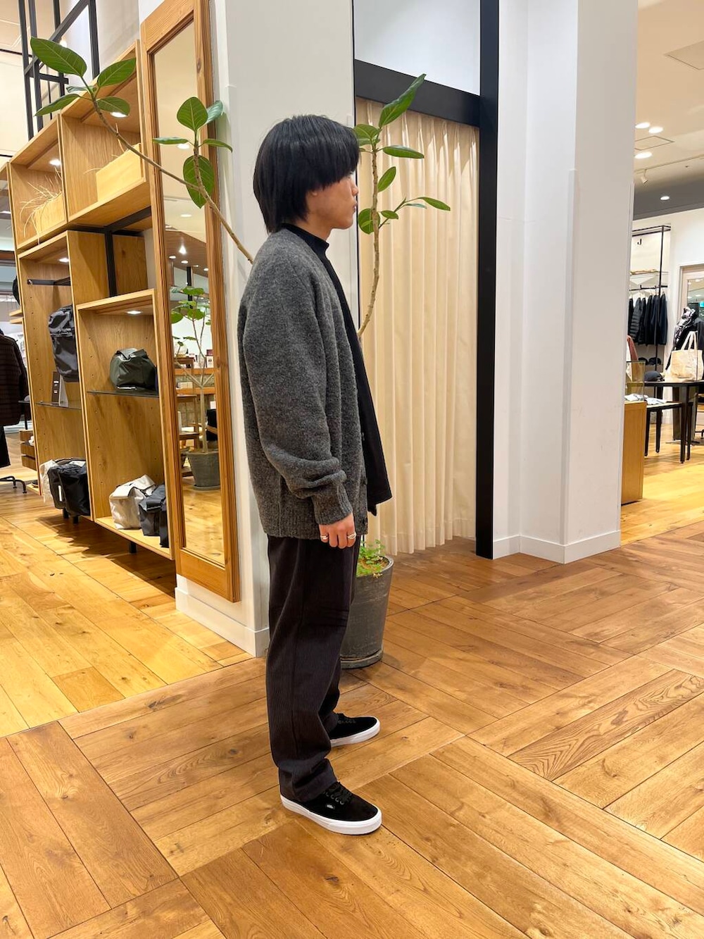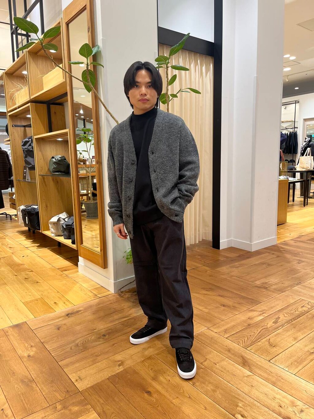 ・カーディガンとパンツもややゆとりがありストレスなく着用いただけます。