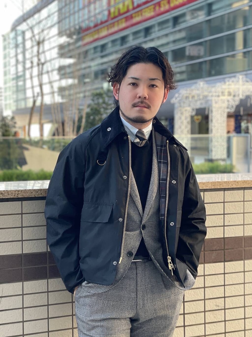 グレンプレイドのフランネルのスーツにBarbourのSPEY。