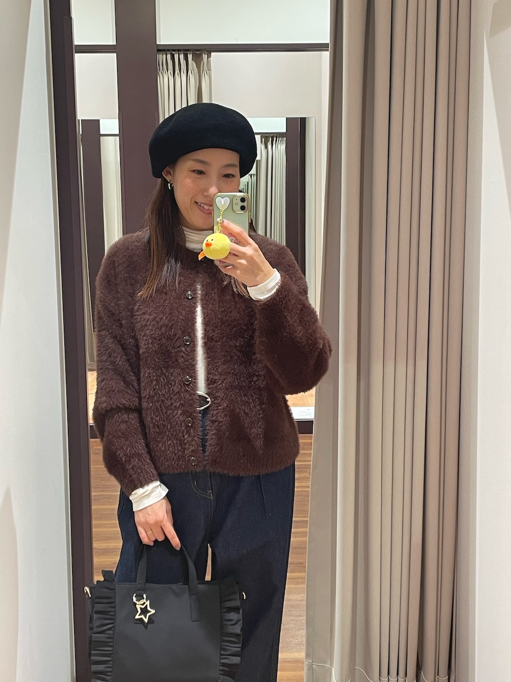 推しカラーのブラウンのカーディガンもふわふわ肌触りがよくチクチクもないので着心地がいいです‼︎
