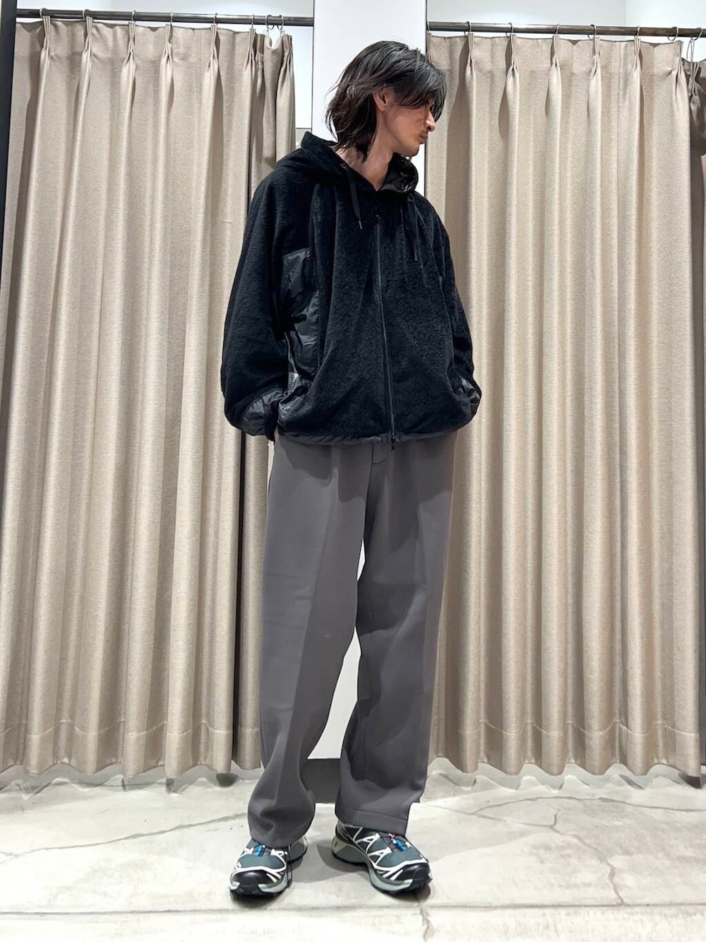 加えてダブルジップや裾のドローコードなど、ギミックは様々。フリース面やナイロン面で全く違った表情を持っているので本当に沢山の可能性を秘めた1着かと。こういったギミック詰め込みのブラックアイテムはきれいめ合わせの外しとしても重宝します!