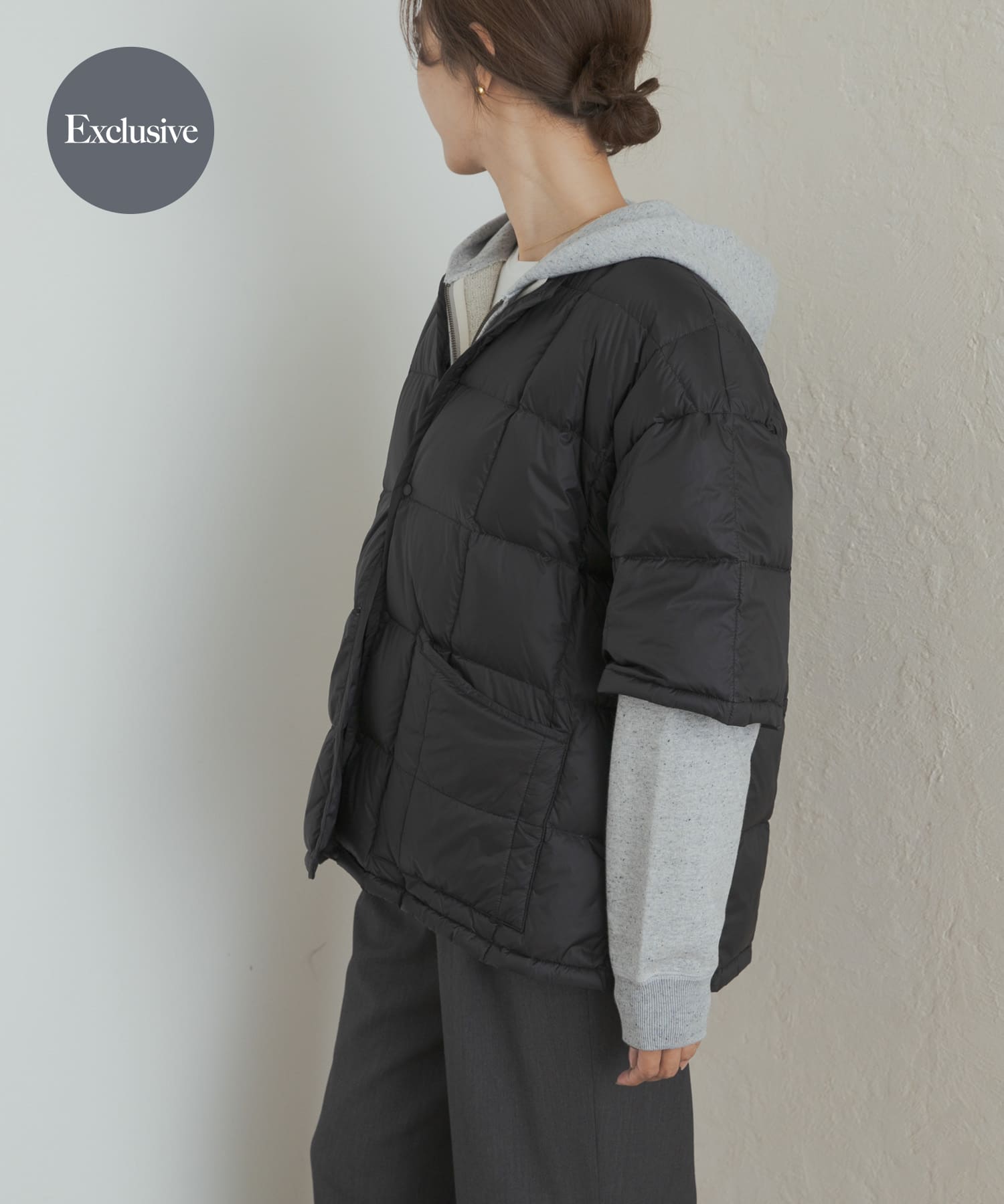 TAION別注のショートスリーブダウン、フードパーカーを入れてカジュアルにしました!