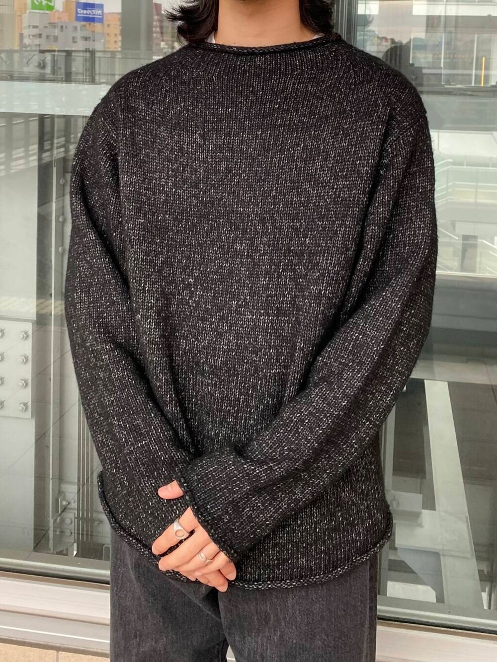 一見シンプルな黒のニットですが、よく見るとロールネックになっています👀