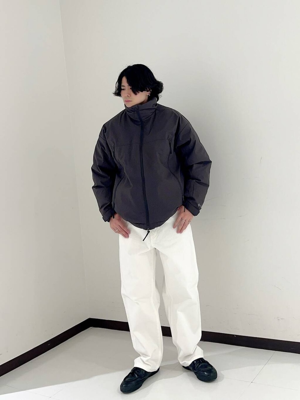 ご覧いただきありがとうございます。本日はプラスフェニックスのダウンをメインにスラックスできれいめコーデのご紹介です。