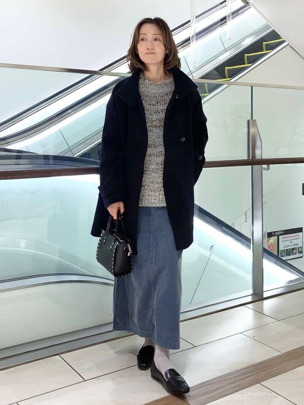 ゆるっとし過ぎず体を綺麗に見せてくれるニットです。ミックスカラーなのでカジュアルな雰囲気ですが、肩のラインをしっかり取ってくれるので、女性らしく着られます!たまにこういう綺麗なラインのニットが着たくなりますよね😊