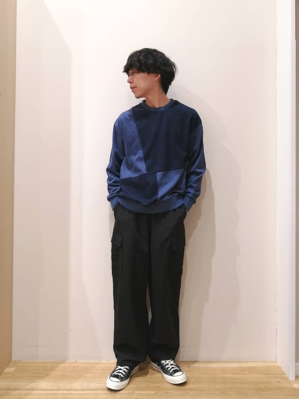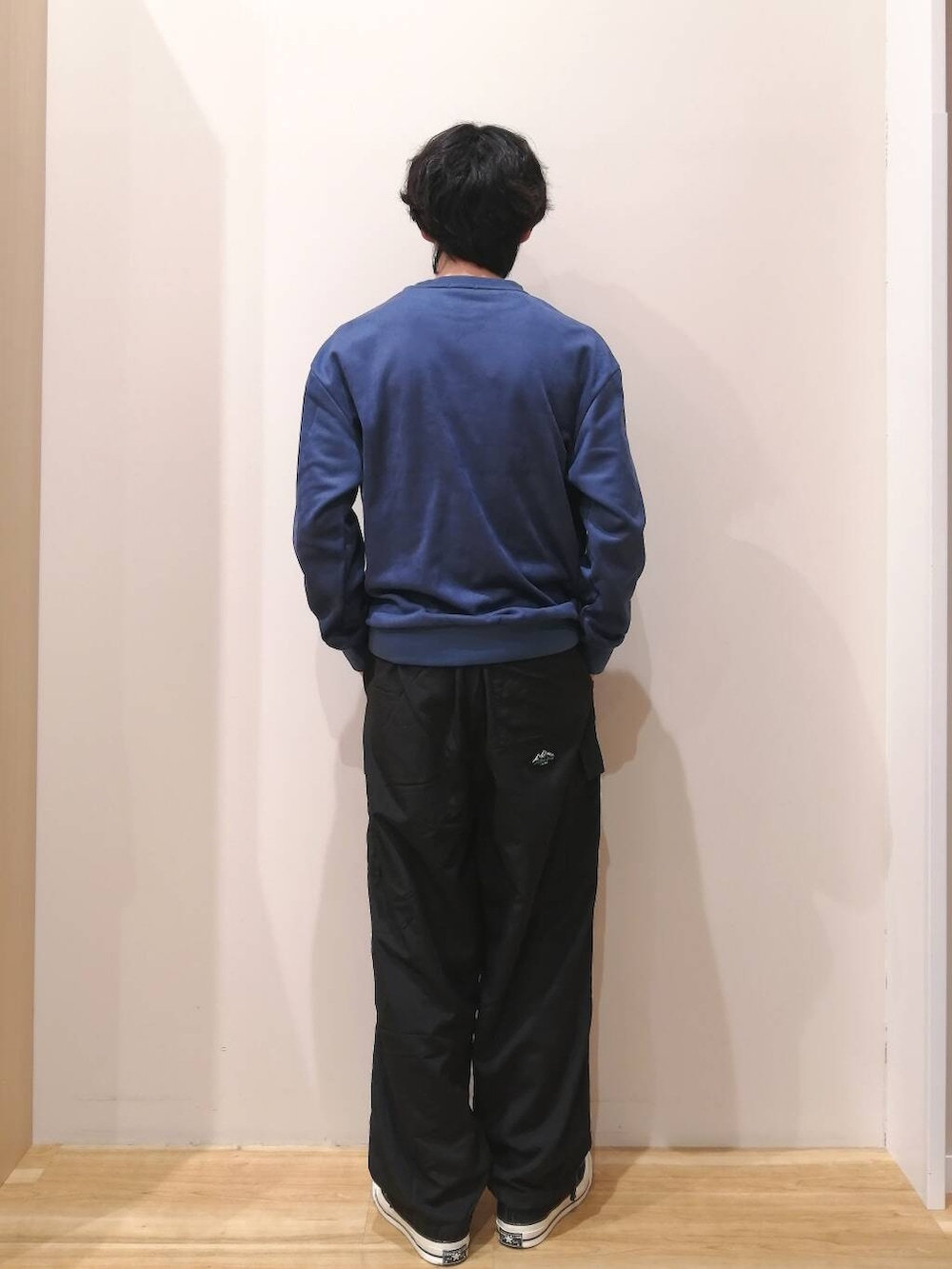 アウター、スウェットはMサイズ、パンツはXLサイズを着用しております。