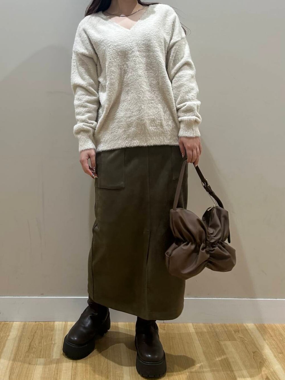 ミニシャギーのVネックニットはふわふわな素材感で全くチクチクしないです^^