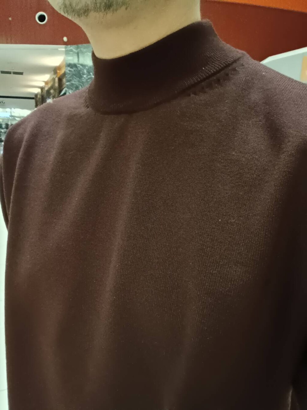 赤系と茶系の色合わせが好きなので、ワインのニット×ブラウンパンツでコーディネートしてみました。