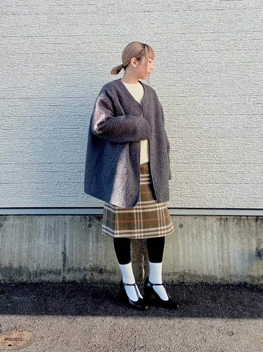 羽織ったボアの軽めなアウターはさらりと羽織るのに便利。オーバーサイズで羽織りやすく、且つ着膨れしにくく感じました。