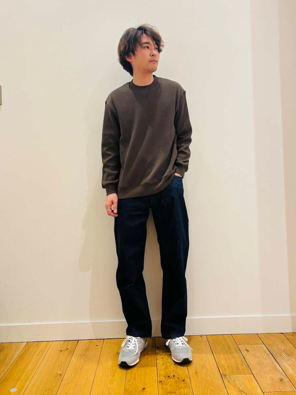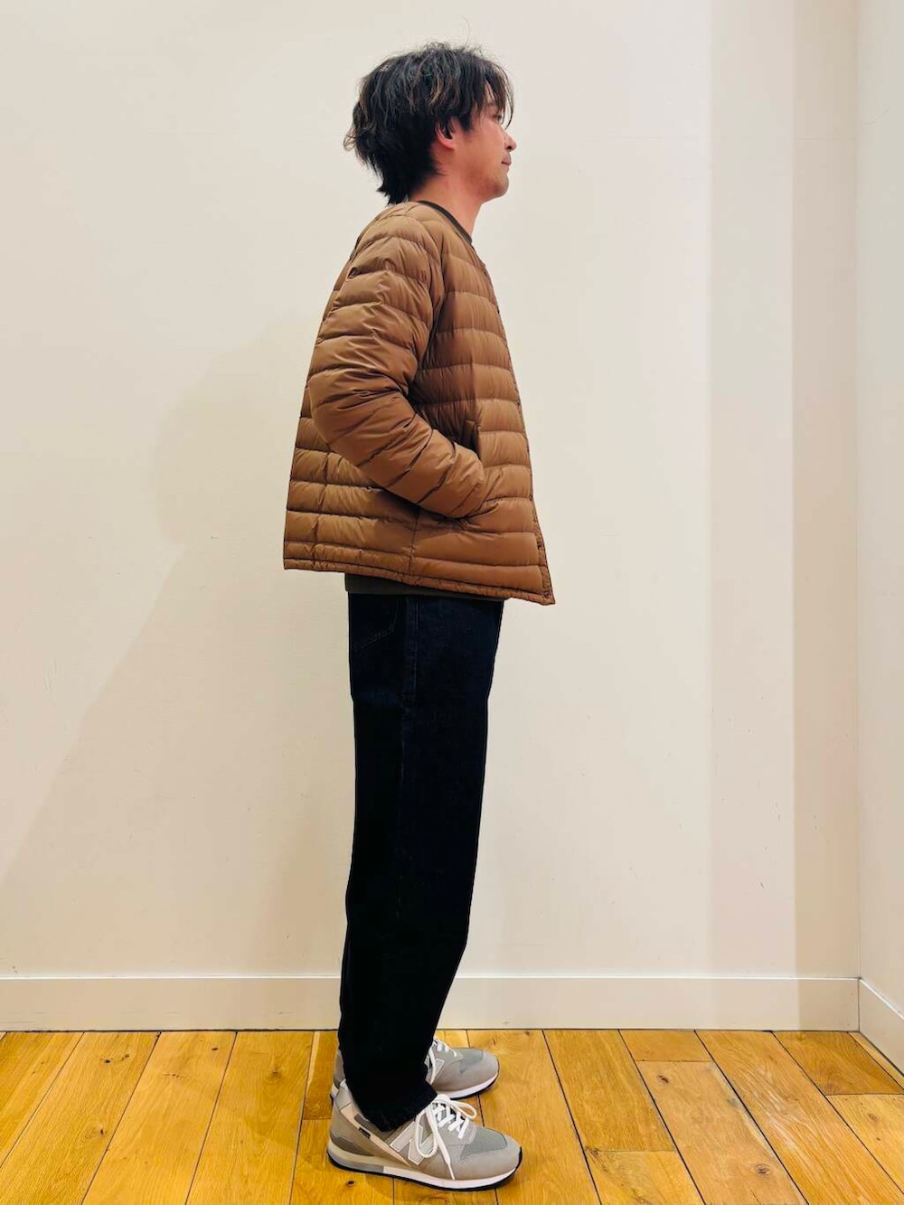 タイト目のシルエットは細身のパンツとの相性が抜群。