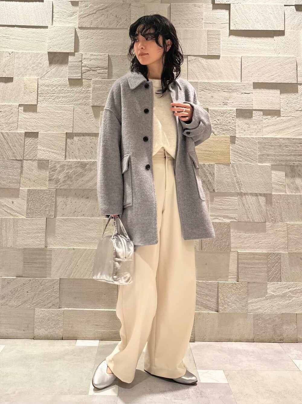 今回はコートのグレートーンに合わせて小物はシルバーでクリーンな着こなしに。