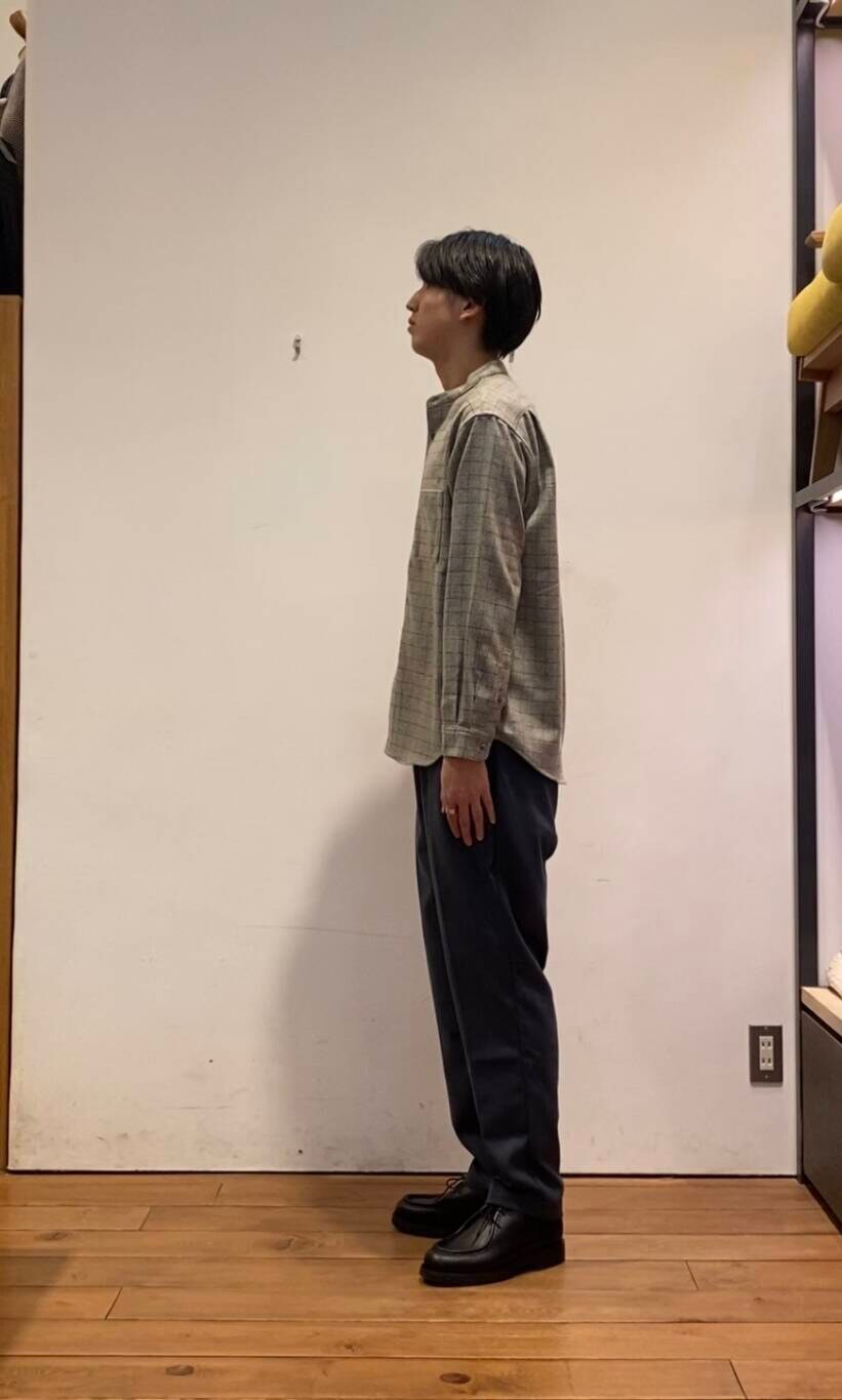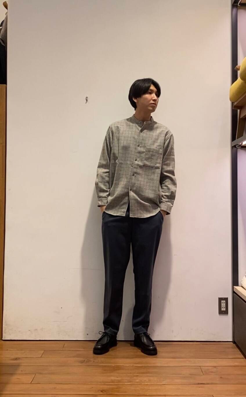 バンドカラーシャツは、ウールも入っており肌触りも柔らかく快適に過ごせる一枚となっております!