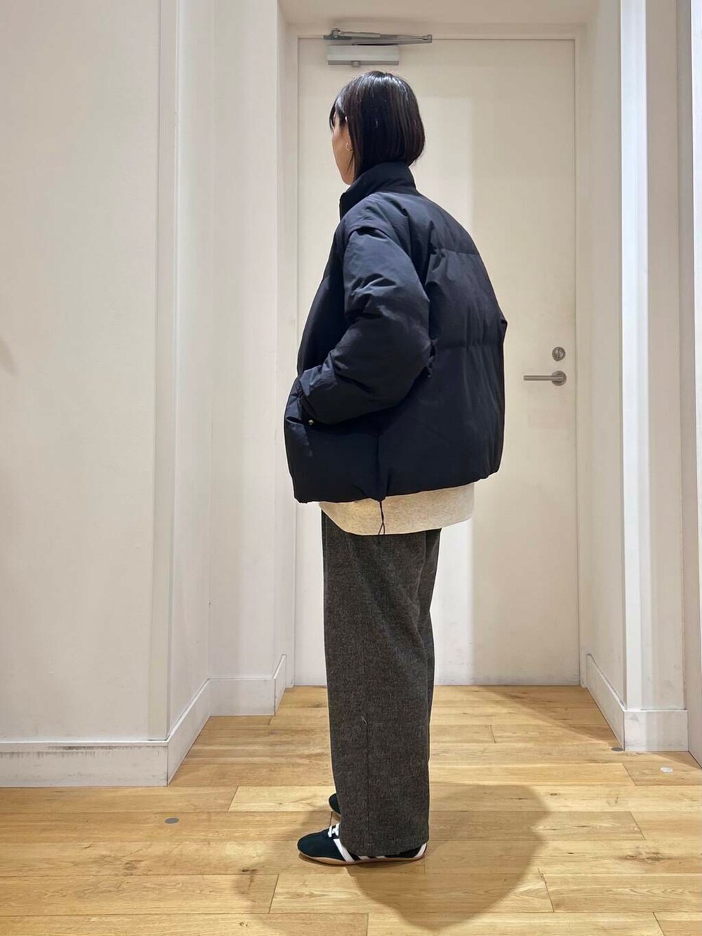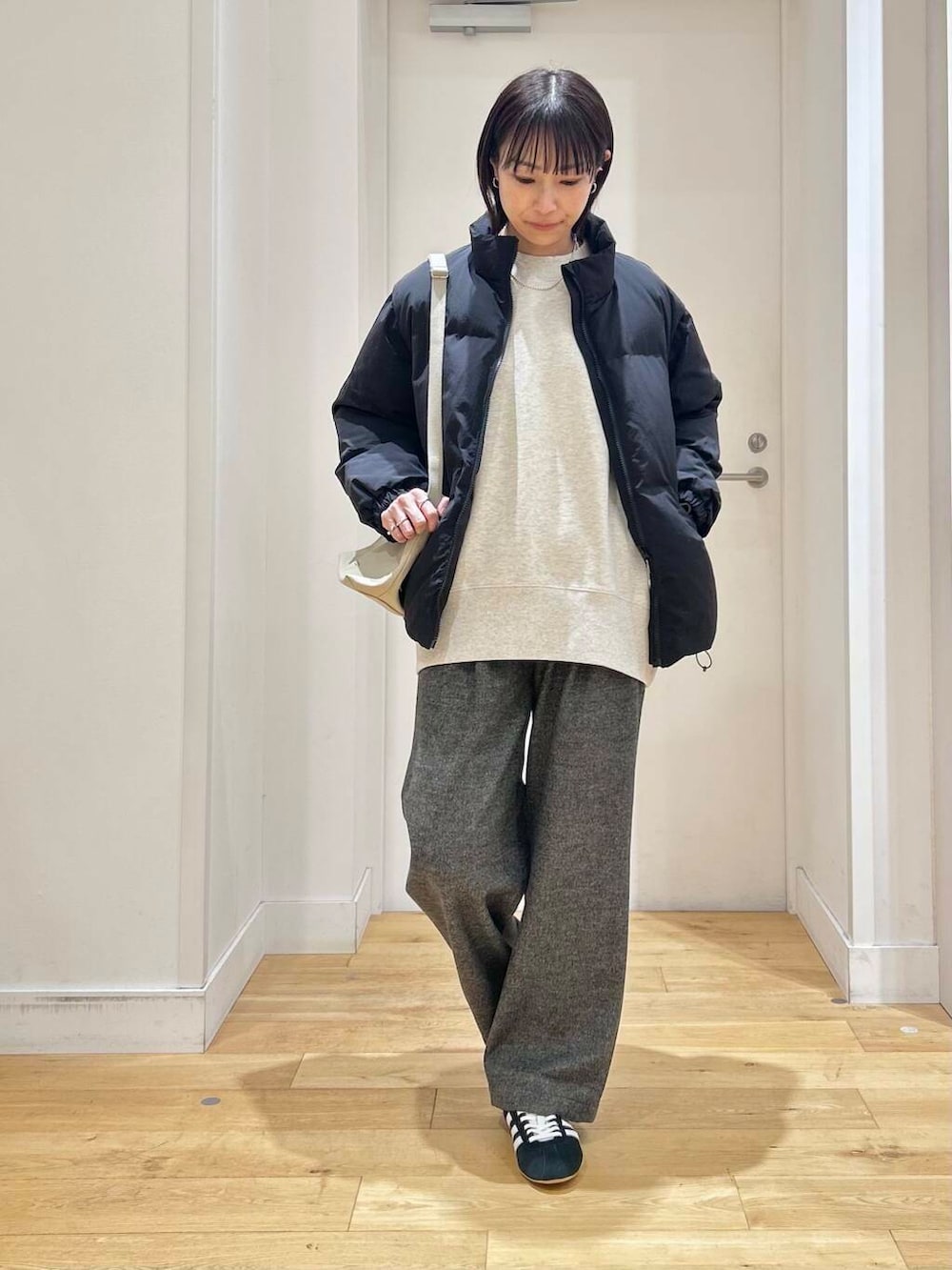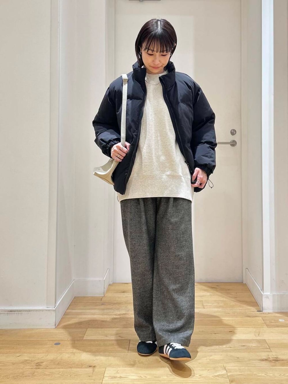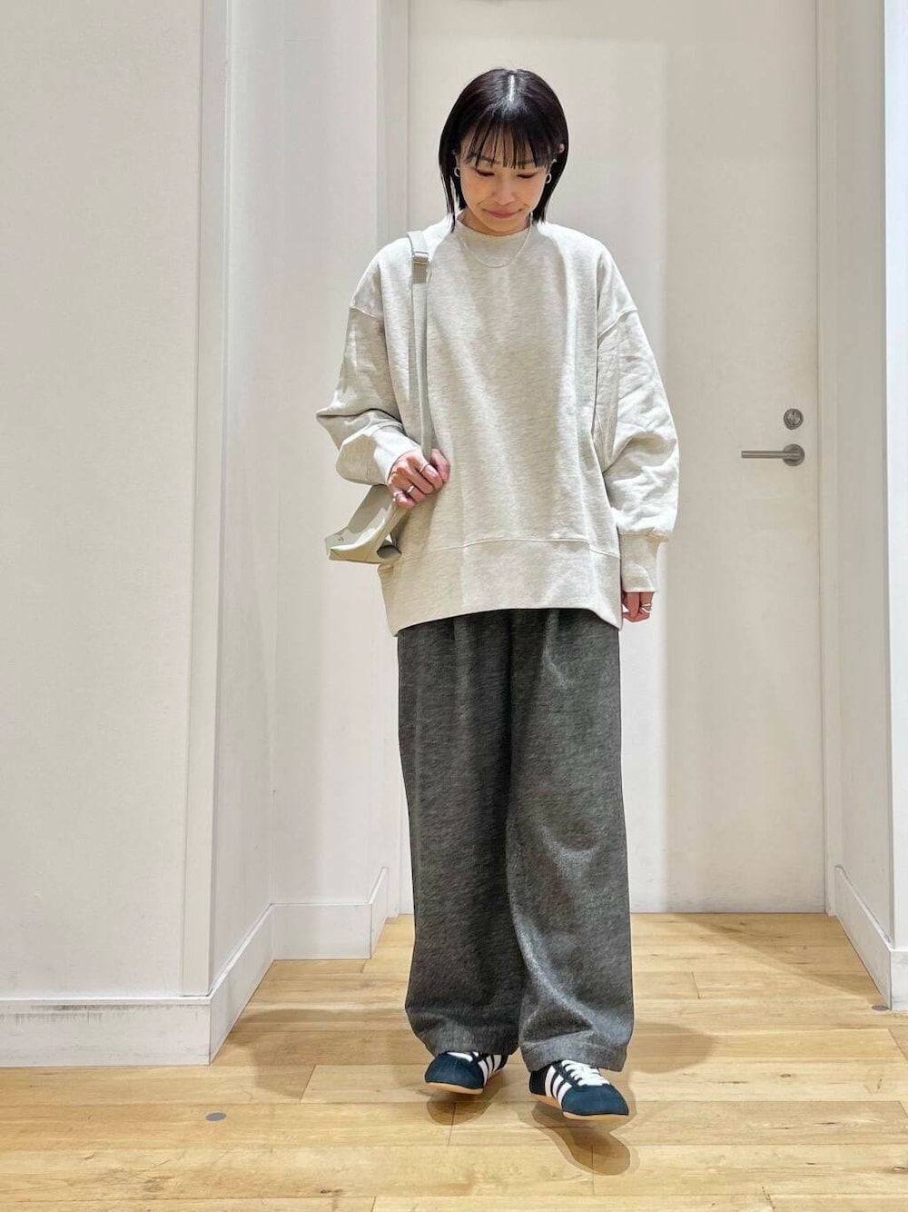 ラフな印象になりすぎないように、ボトムスにはシルエットの綺麗なブラッシュドパンツを合わせました!