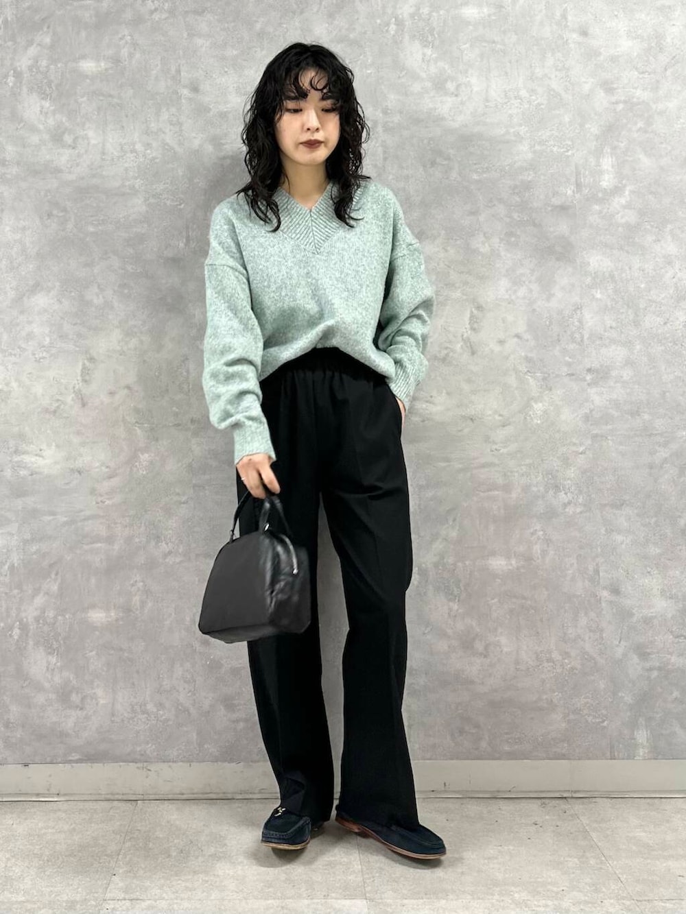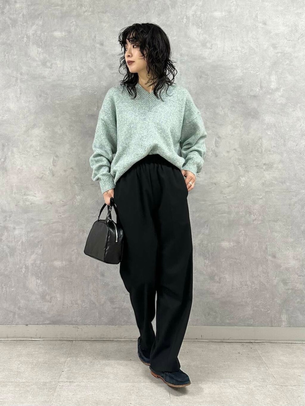 ストレートパンツは冬にありがたい裏起毛使用。腰回りはゆったりデザインなので、ボディラインも拾わず冬に間違いなしの楽ちんボトムです。