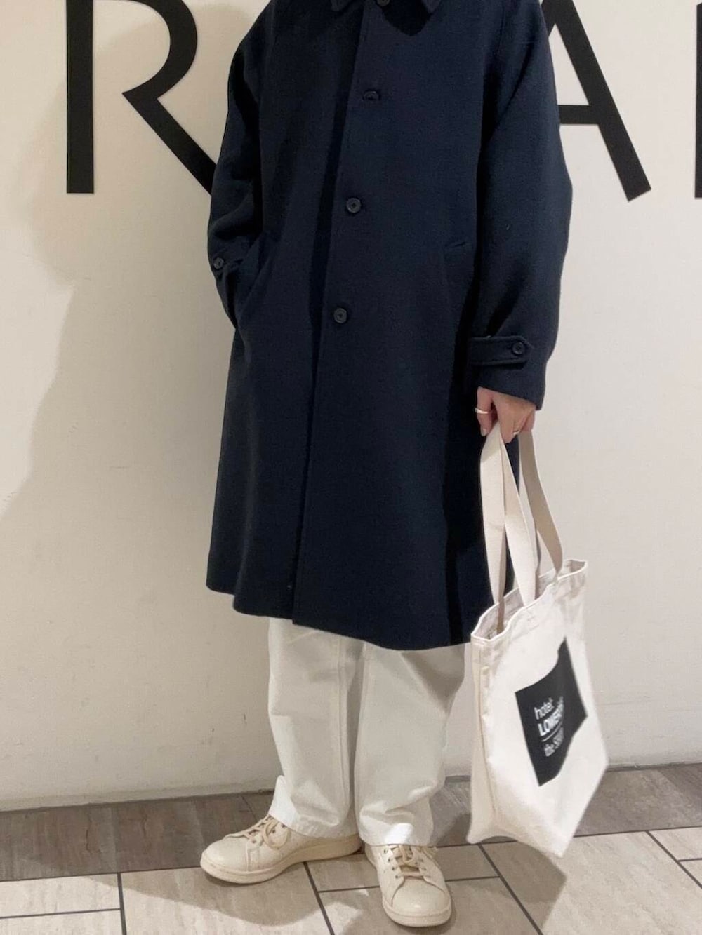 そんな時はネイビーブルーのロングコートに合わせてクリーンな印象に✨