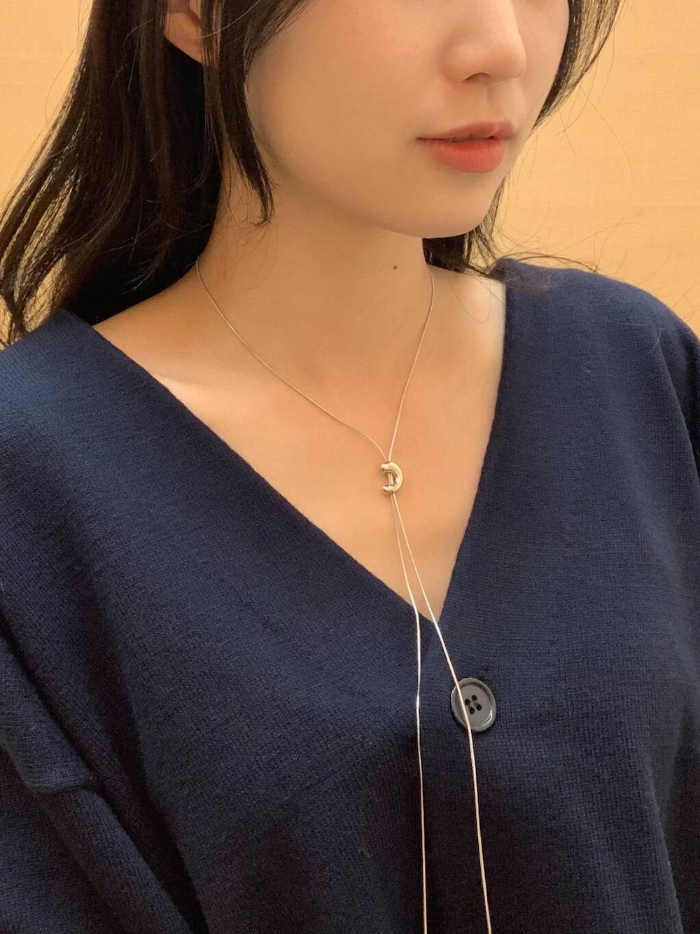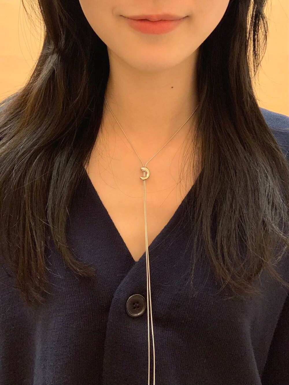 モチーフを好きな位置に動かすことができるので、服のテイストや形に合わせて付けられるのがこのネックレスのメリット!どんな洋服にも合わすことのできるデザインです!