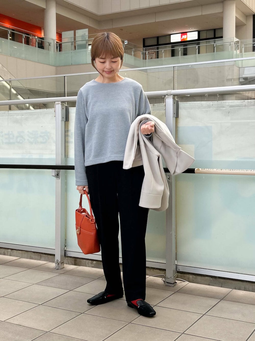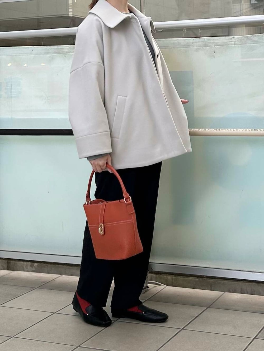 ボトムもオンオフ使えるパンツを合わせました。