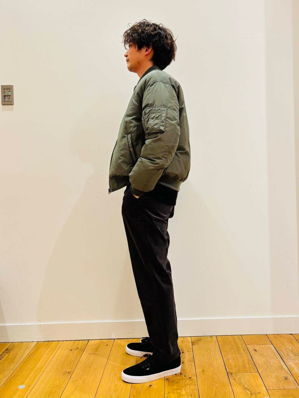 あまりオーバー過ぎないデザインなので細身のパンツで合わせても◎