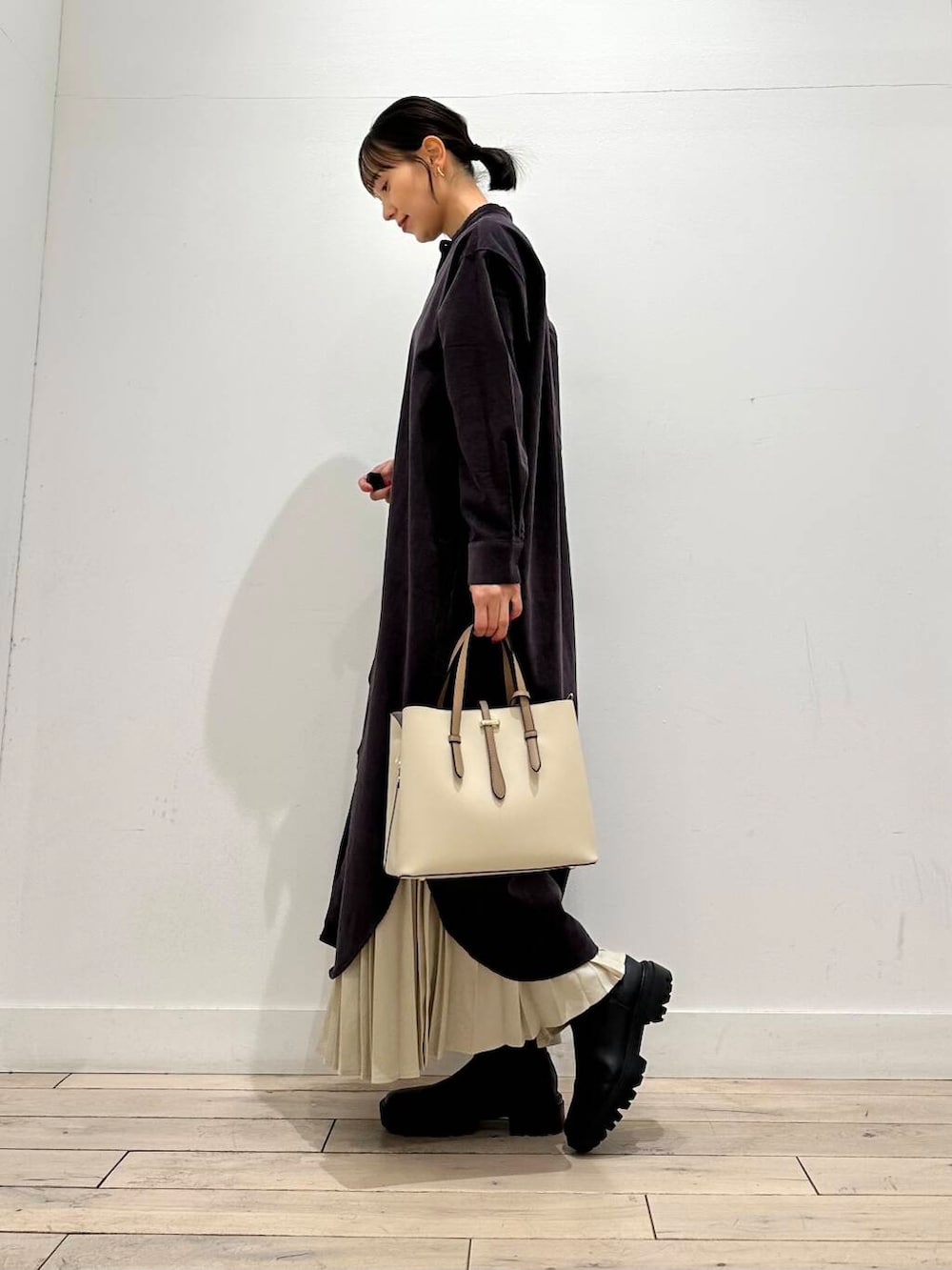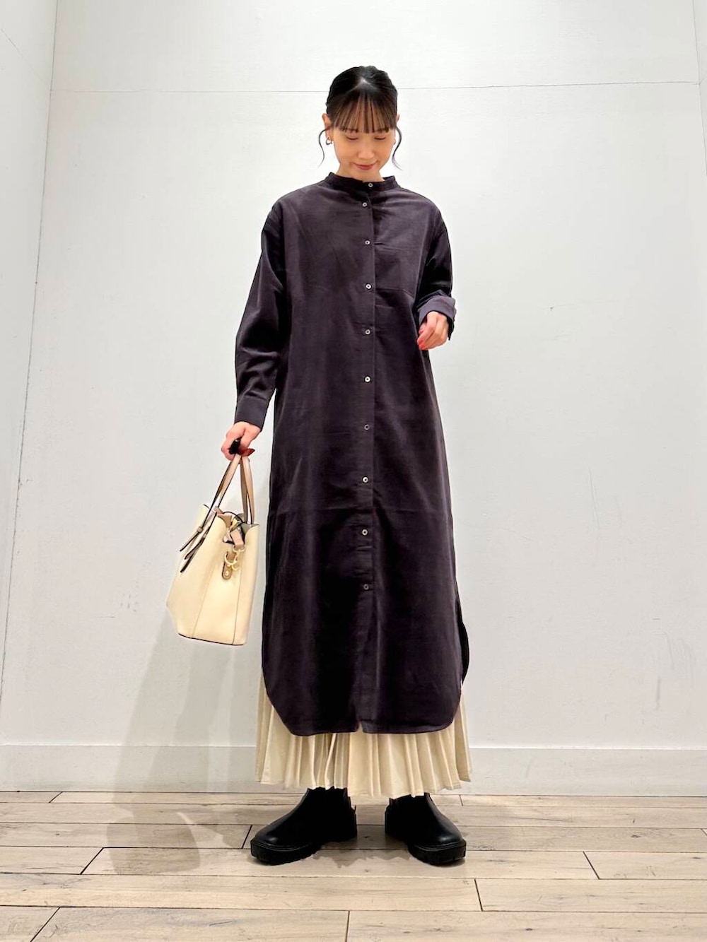 今日はブーツと合わせましたが、パンツやスカートとレイヤードするコーディネートもおすすめです◎