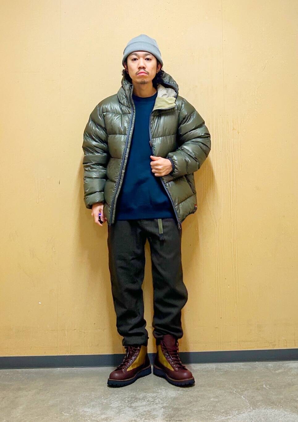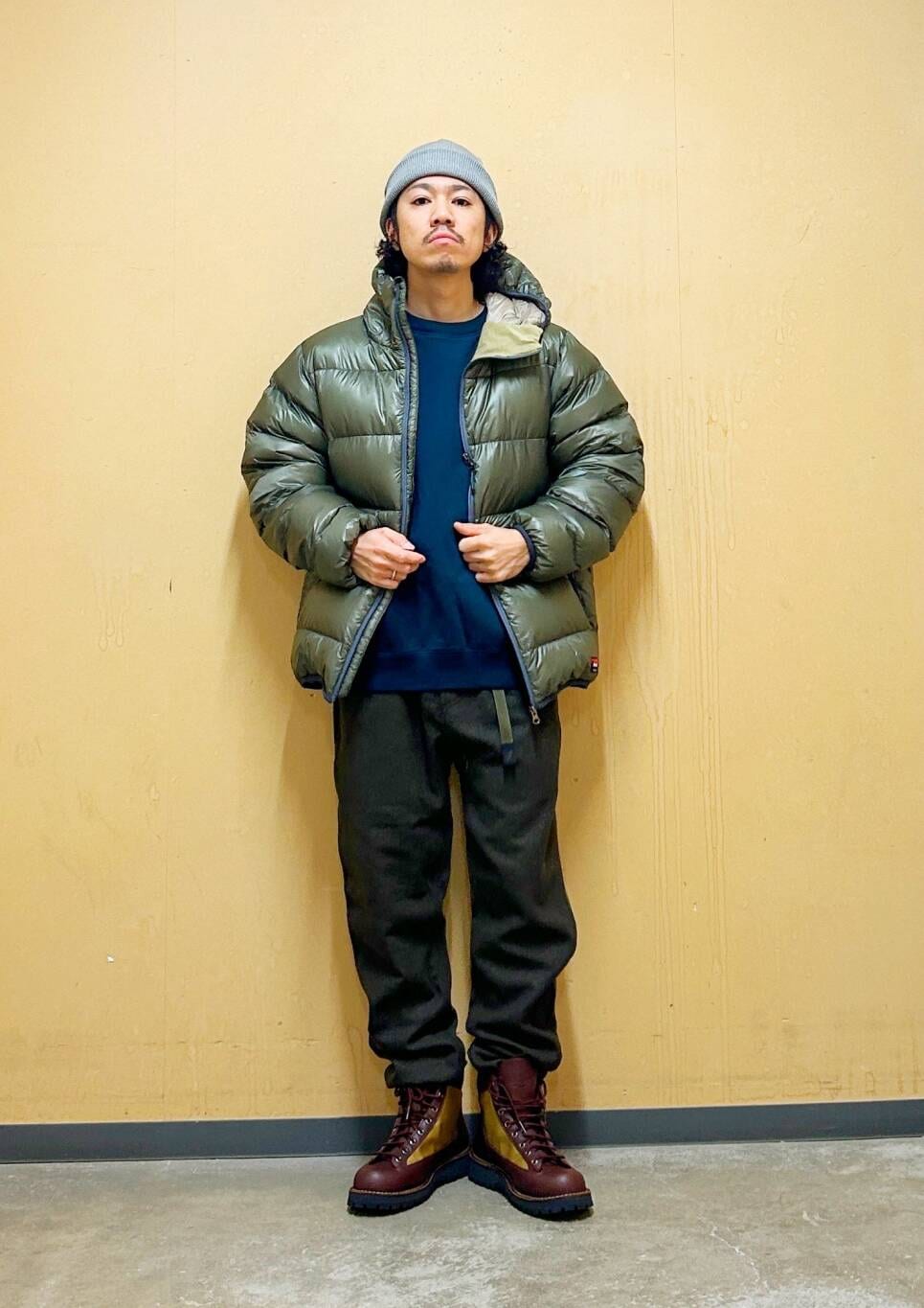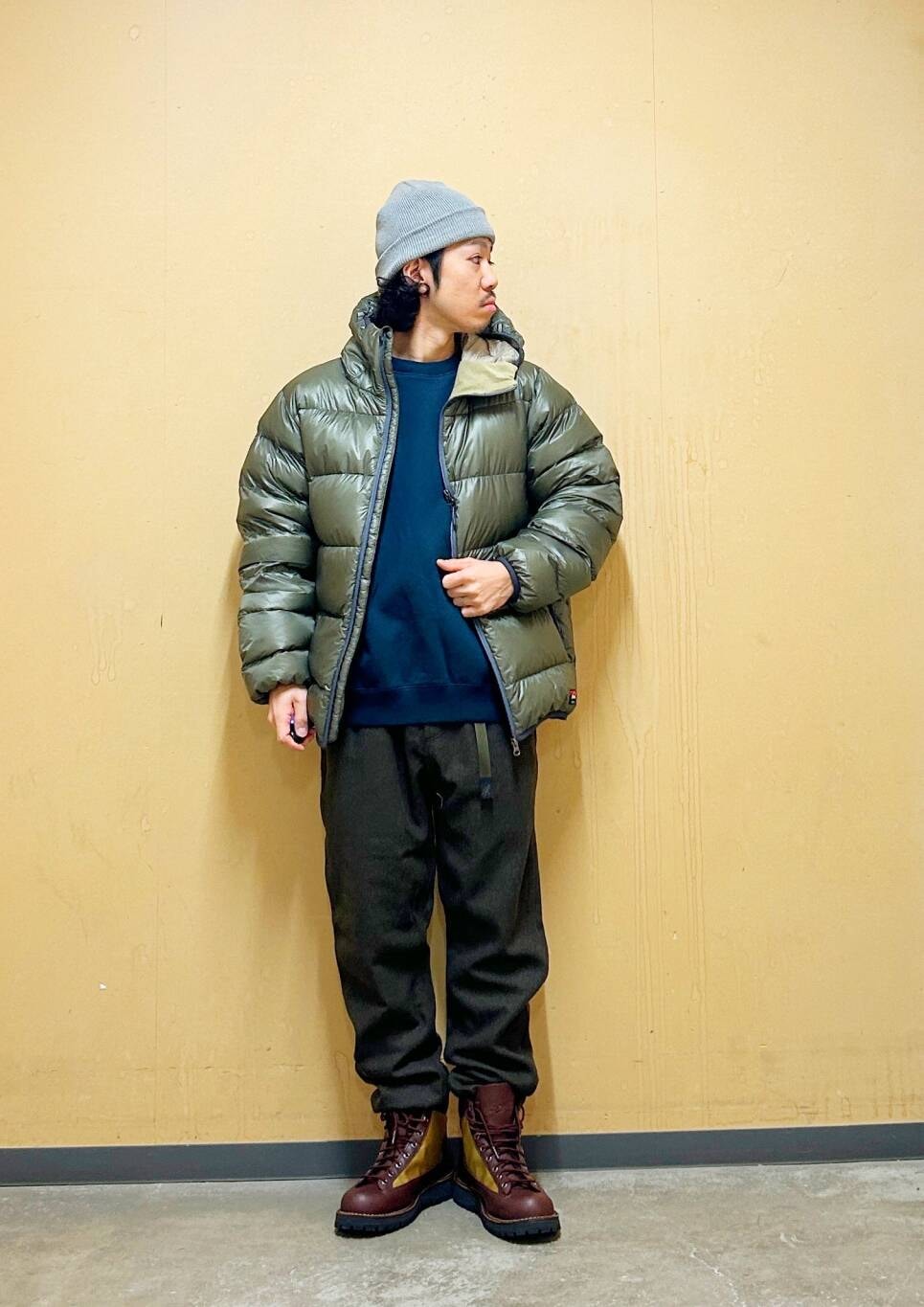 今回はNANGAダウンブルゾンとグラミチ別注ウールパンツを使用したコーディネート。