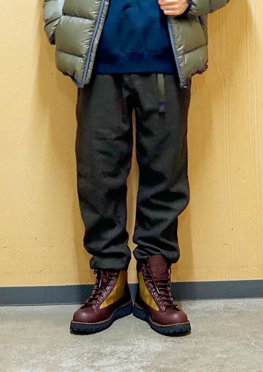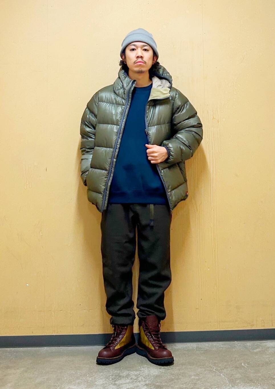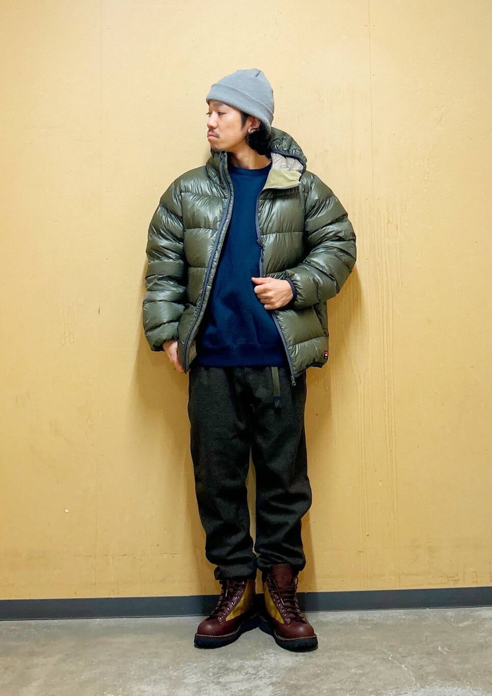 今回はNANGAダウンブルゾンとグラミチ別注ウールパンツを使用したコーディネート。