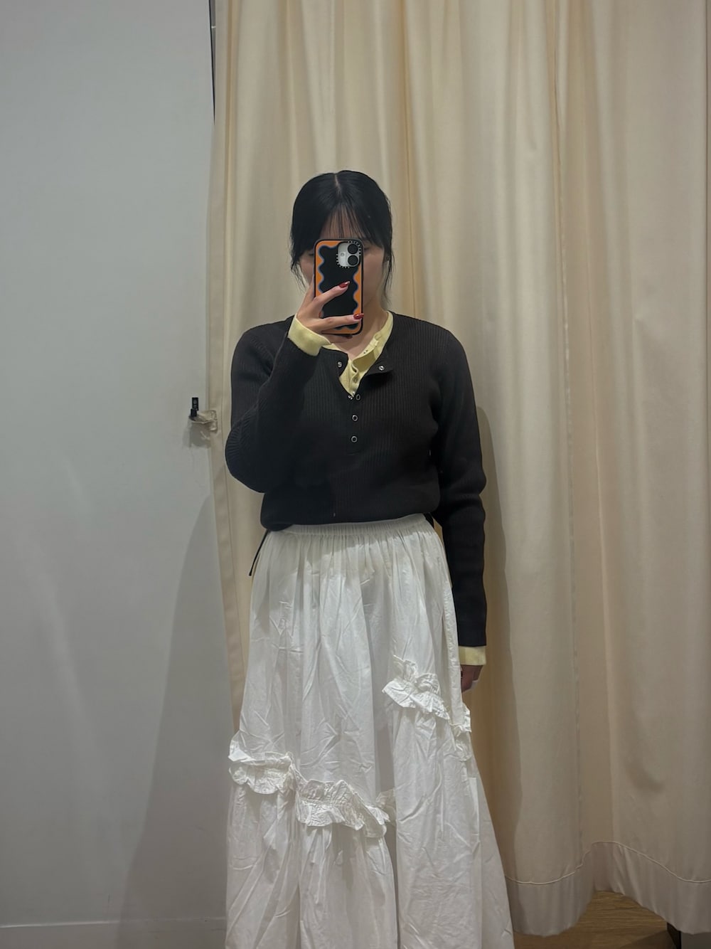 スカートは部分的なフリルだから甘くなりすぎず履きやすいです!