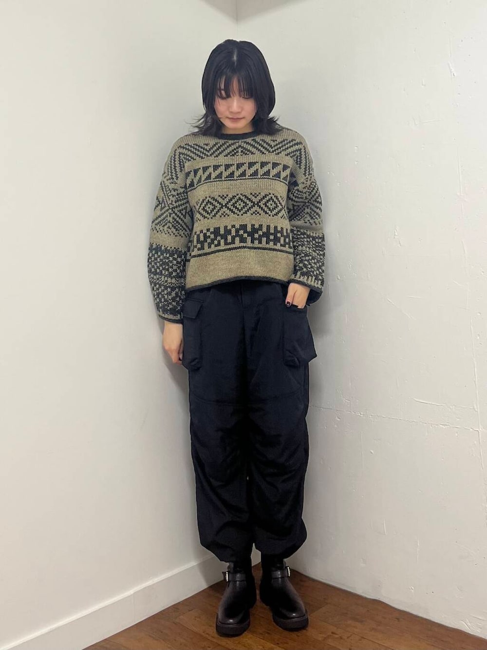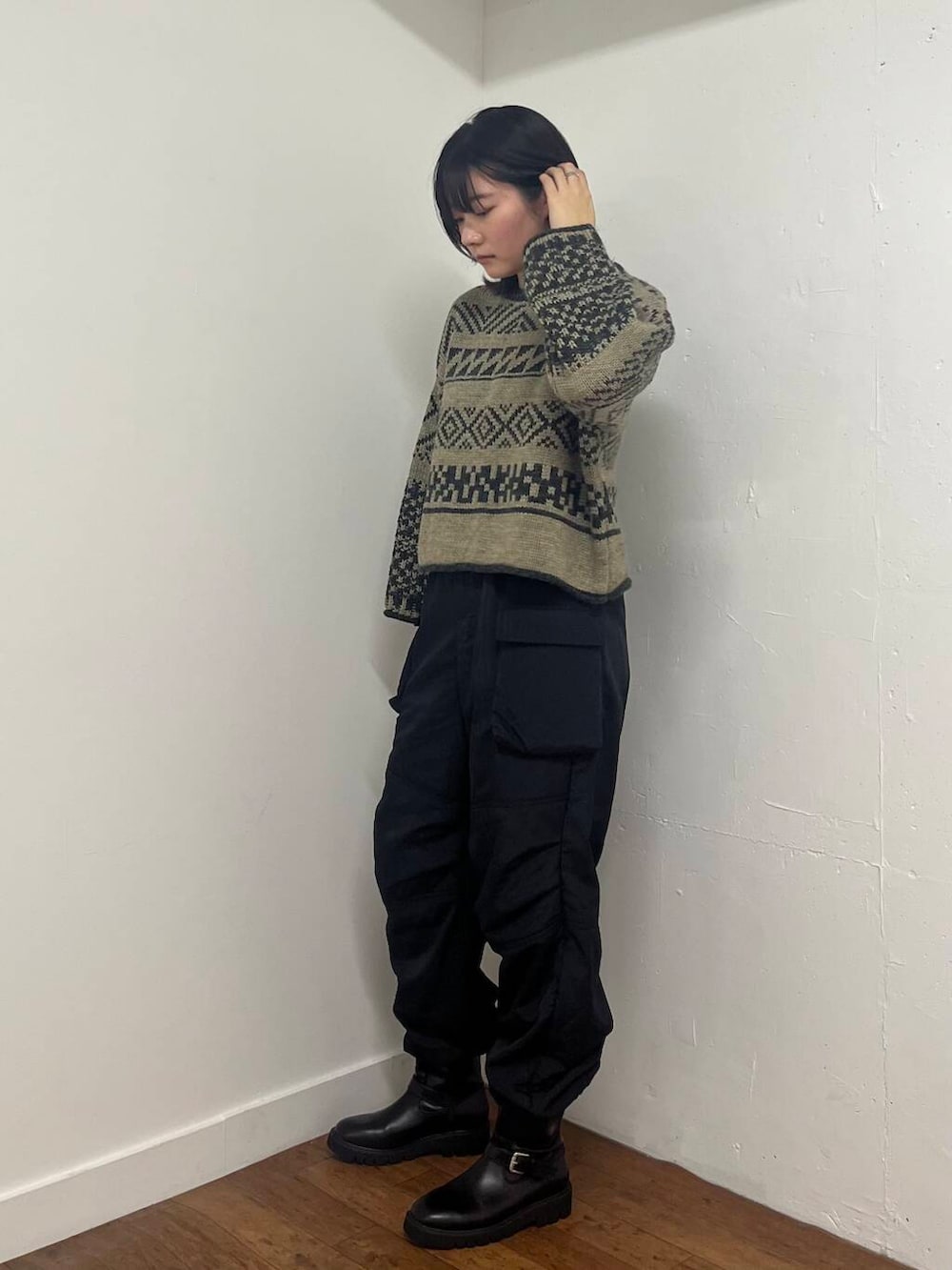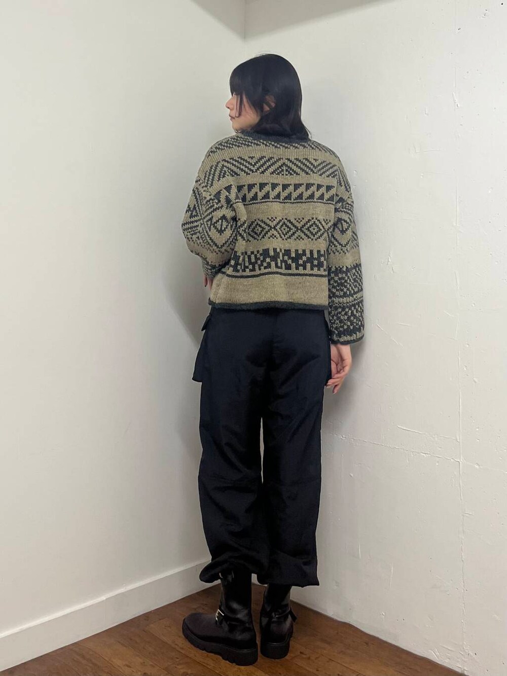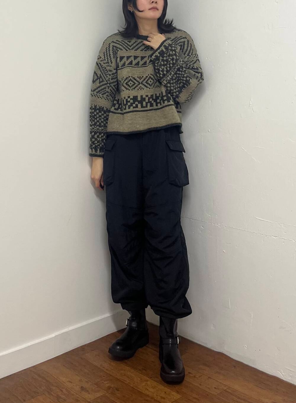 ニットの柄が特徴があるので、ボトムはシンプルなのですが、ハイウエストで少しディテールが分かるKBFのパンツを合わせたのでトレンドを詰め込んだコーデにしてみました!