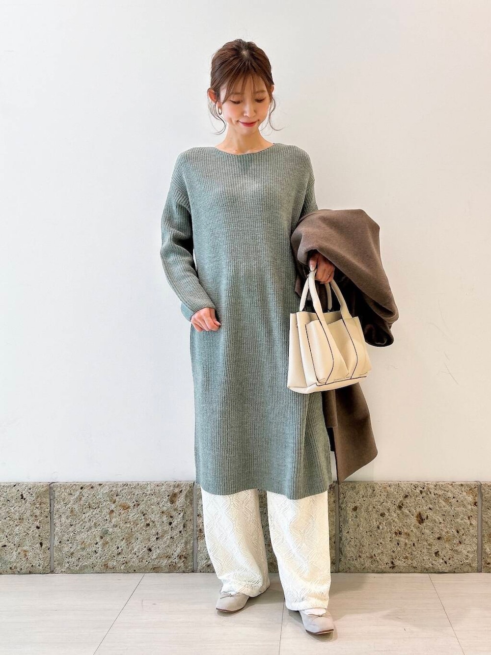 ニットワンピはくすみミントカラーが大人可愛いです♡