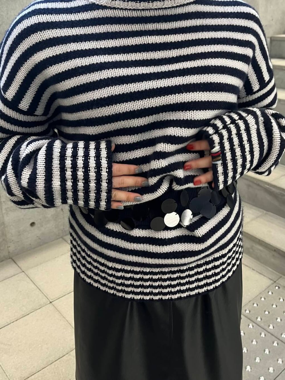 ベルトはスパンコールがシンプルなコーデのポイントになるのでどんなトップスにもあわせていただけます!