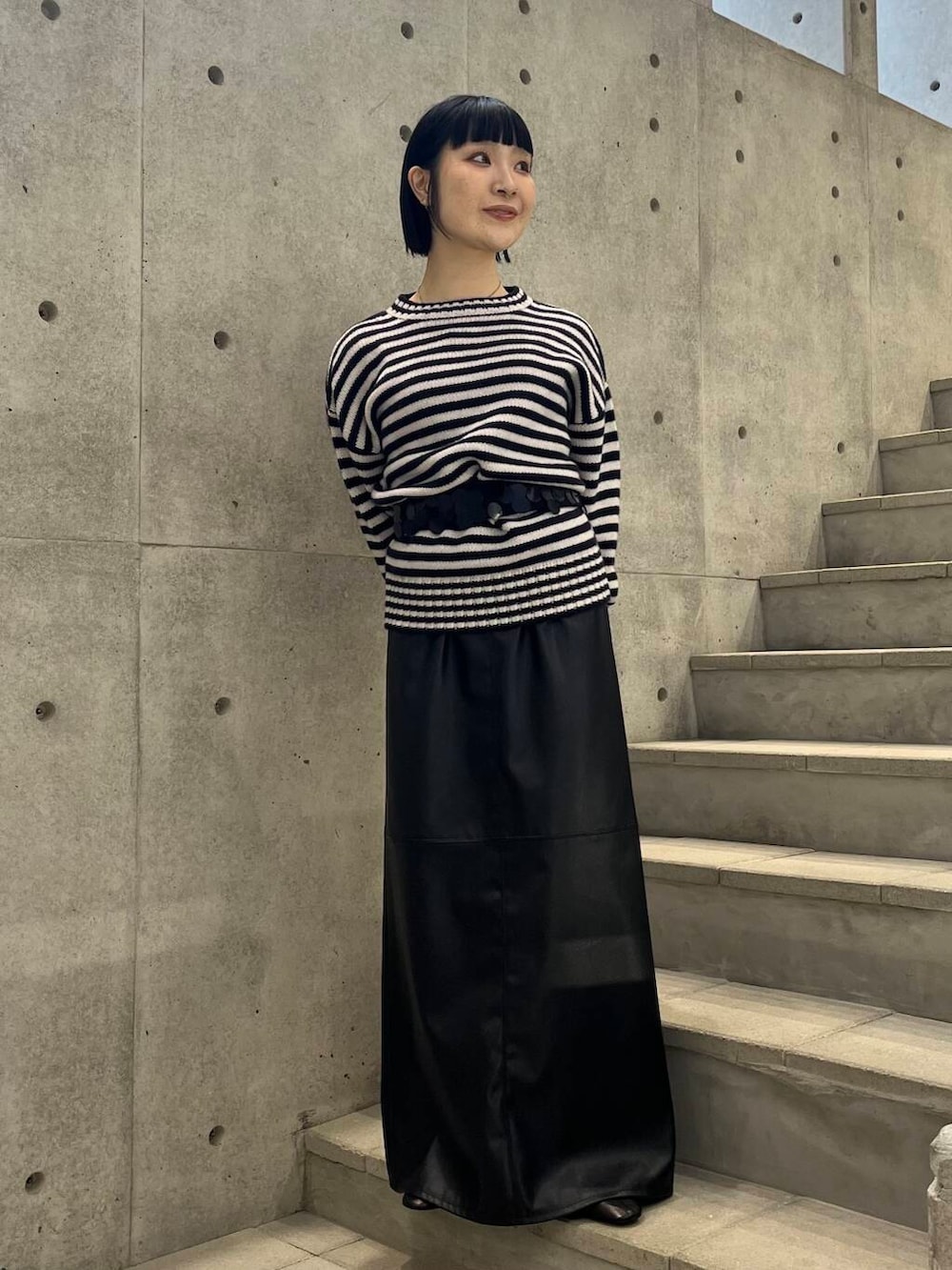 ニットはアームが長くカジュアルにみえつつレディースライクにも◎