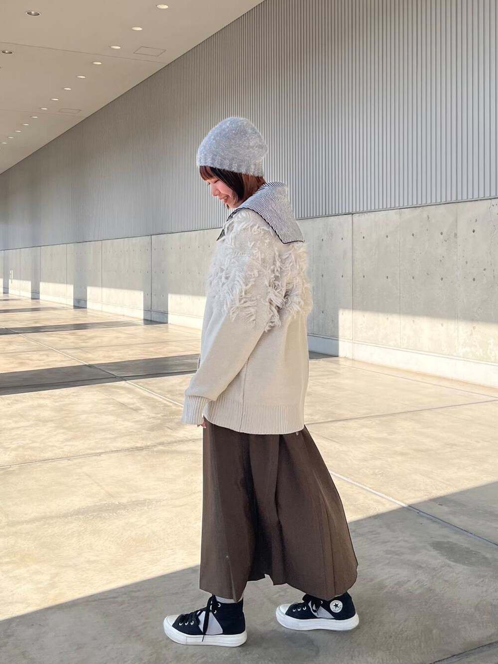 大きい襟のセーラーカラーはモノトーンコーデで組めば、一気にモード感溢れるかっこいいコーデに✨