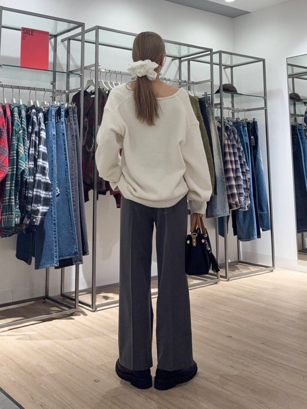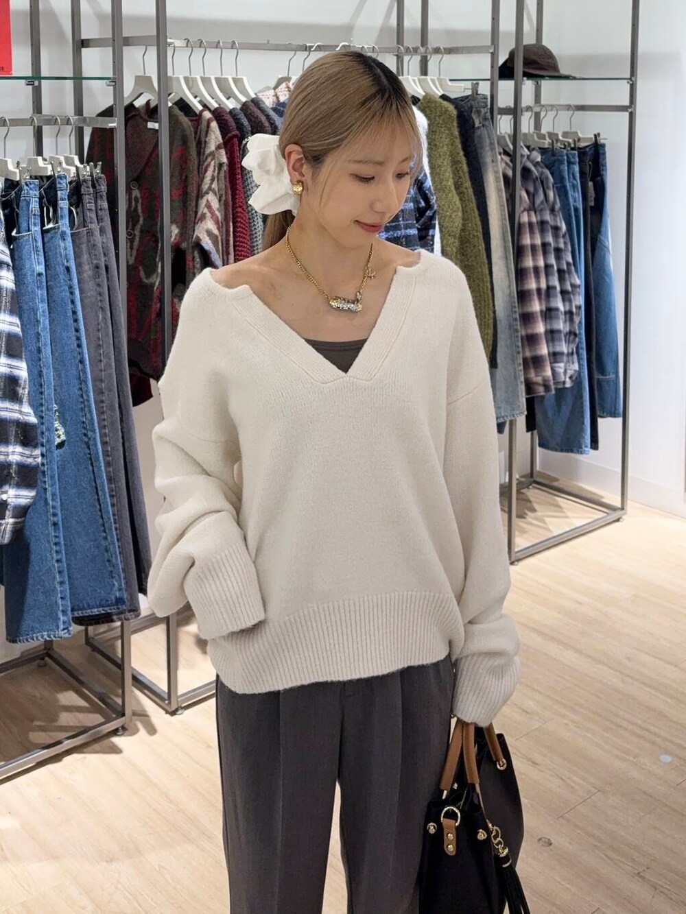 ゆるっと感が可愛いニットは、首元の大きなVネックのデザインがポイントで着るだけでリラックス感が出ます!
