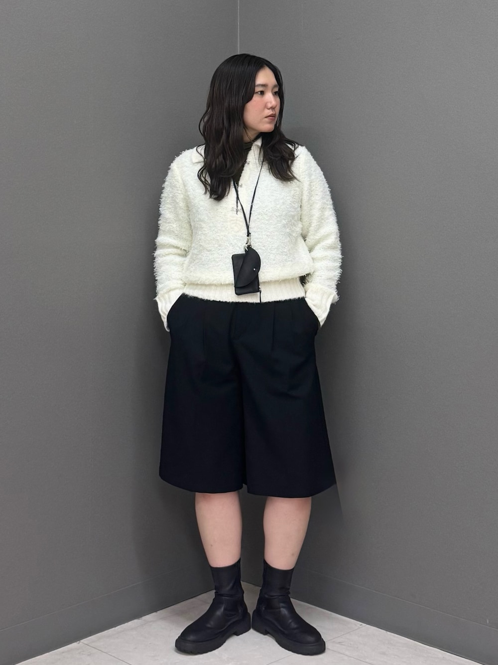 全てブラックでまとめて、ベストのふわふわのループ感が目立つように組んでみました!