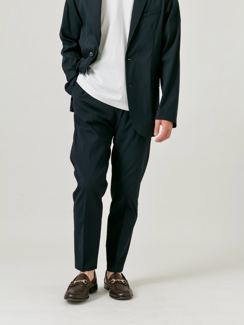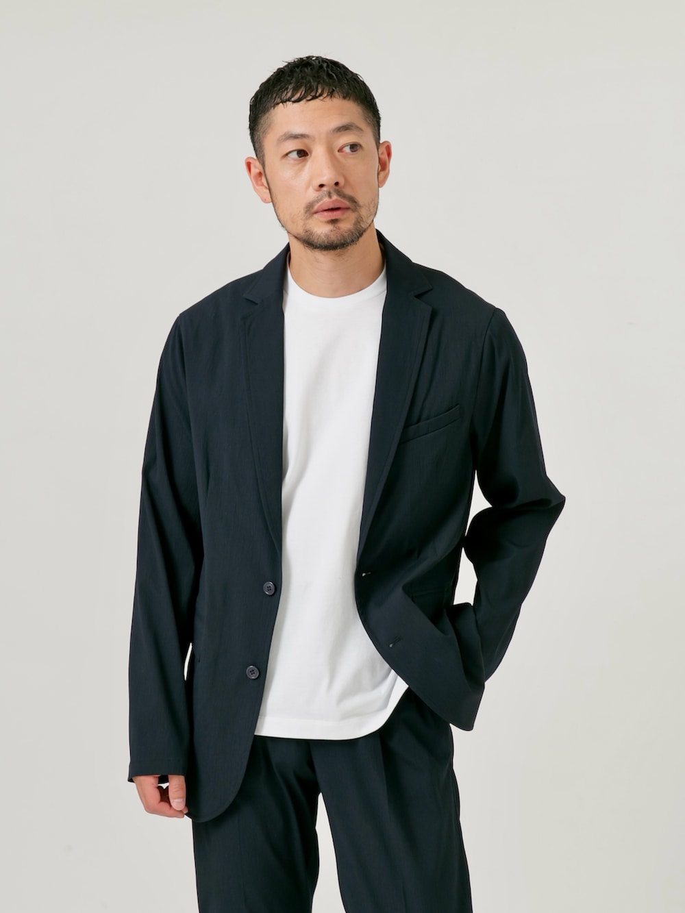 さらっと肌離れの良い楊柳素材に抜群のストレッチ&速乾性、家庭簡単に洗えるイージーケア仕様の無敵セットアップ。