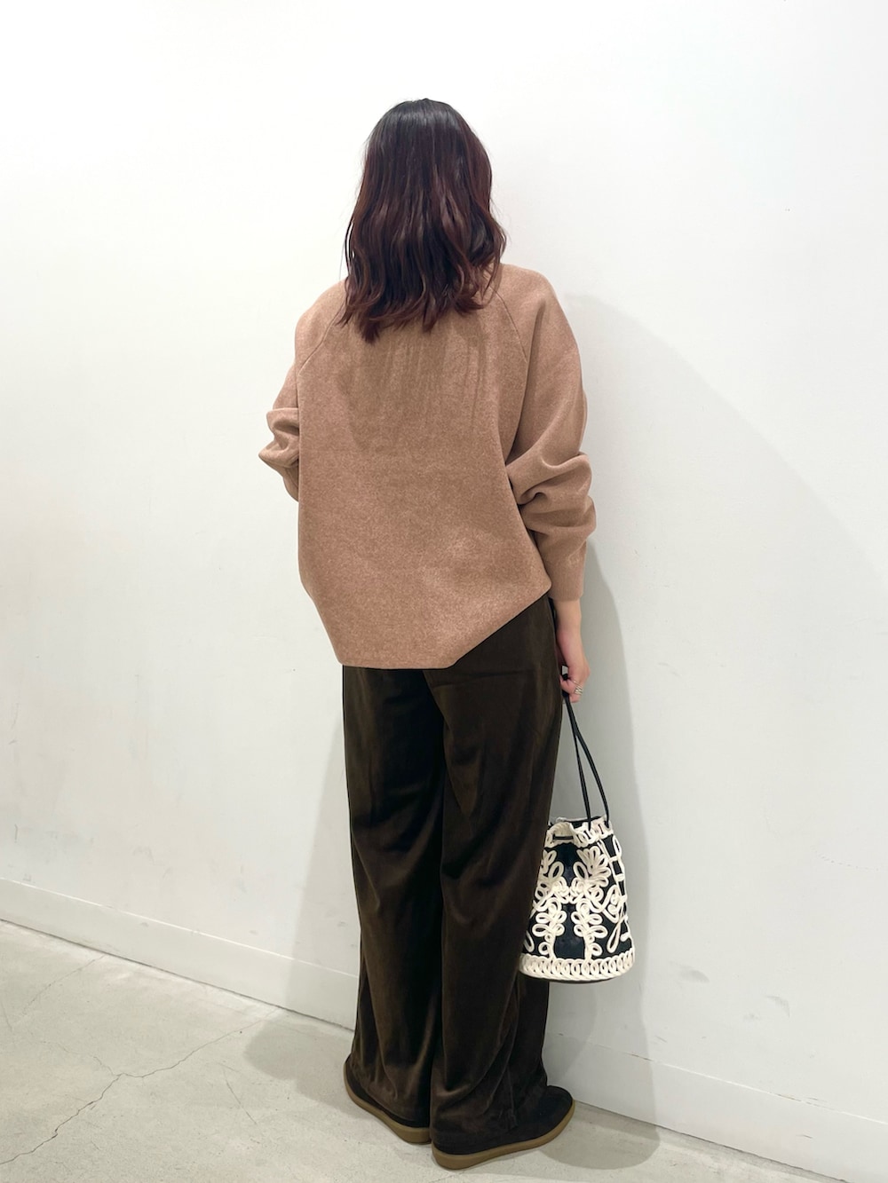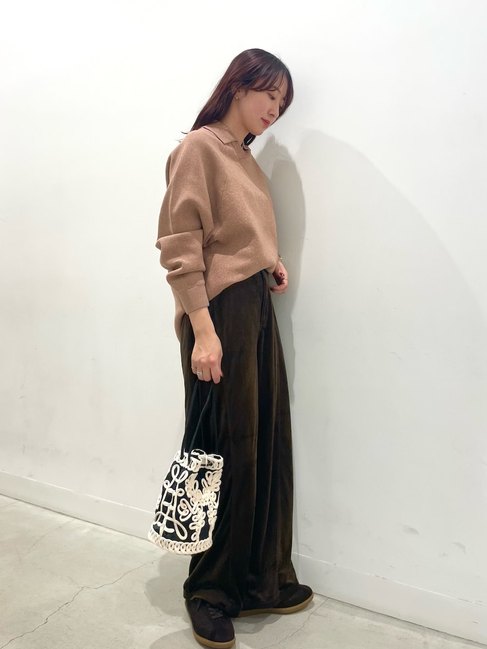 ブラウンのパンツを合わせて柔らかい雰囲気の大人コーデに仕上げました◎