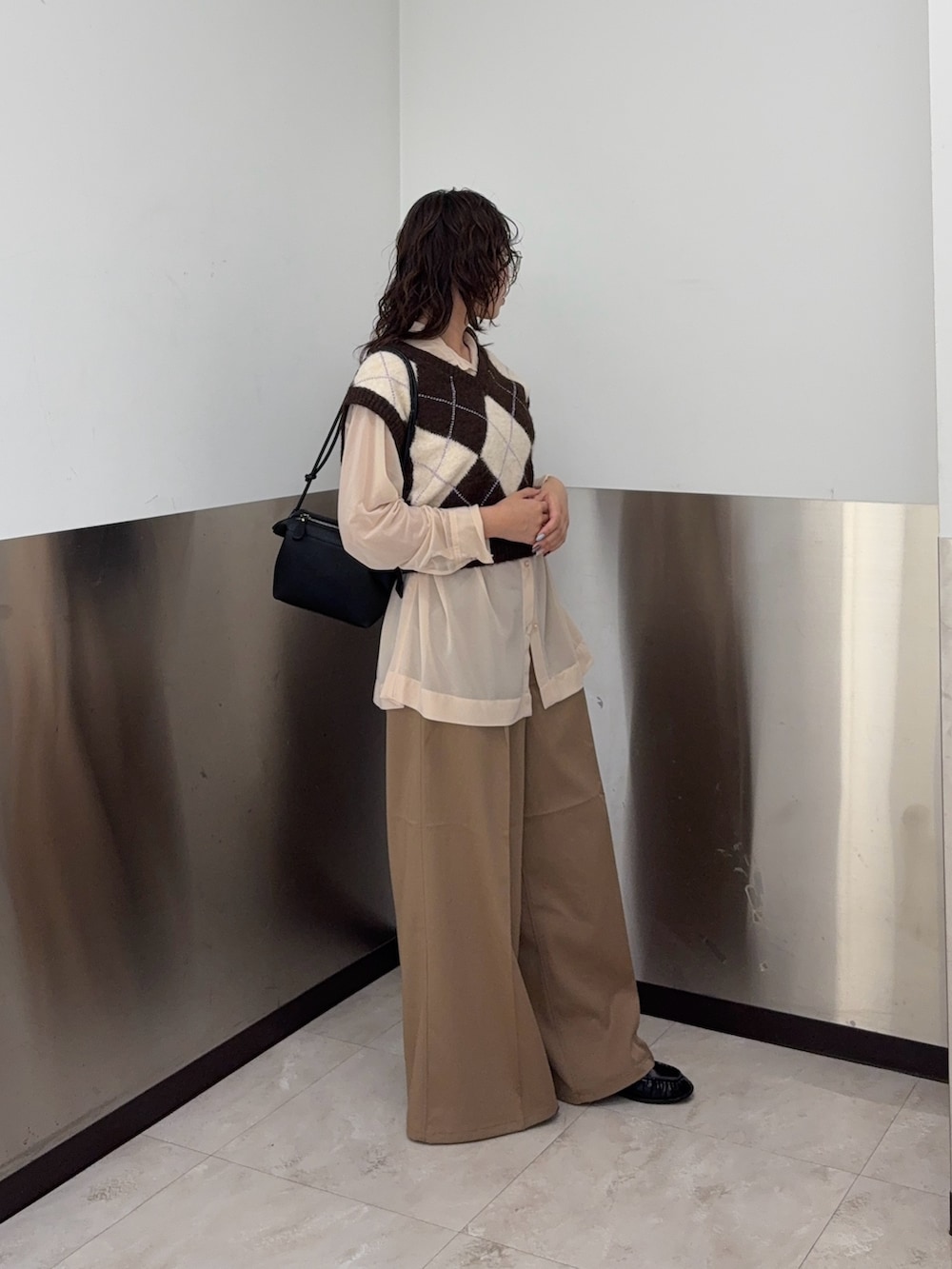 シャツは素材感が薄く柔らかめなので上からベストを重ねても着膨れせず綺麗に着れます🤍