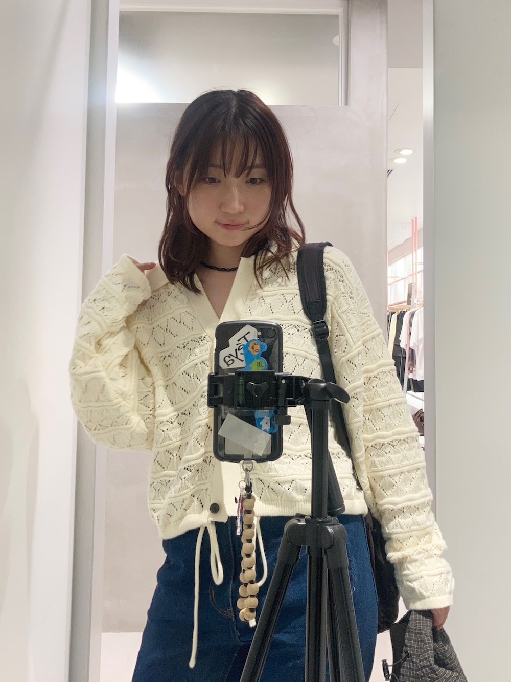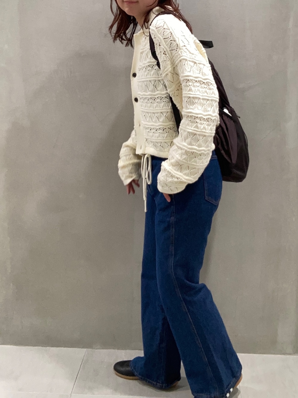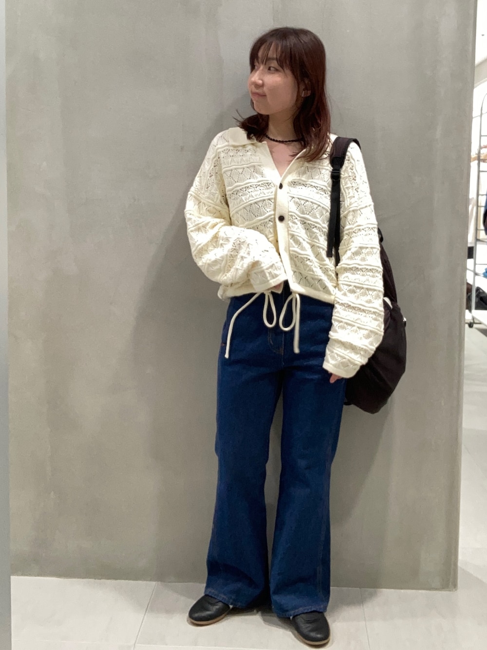 KBF透かし編みキーネックカーディガン