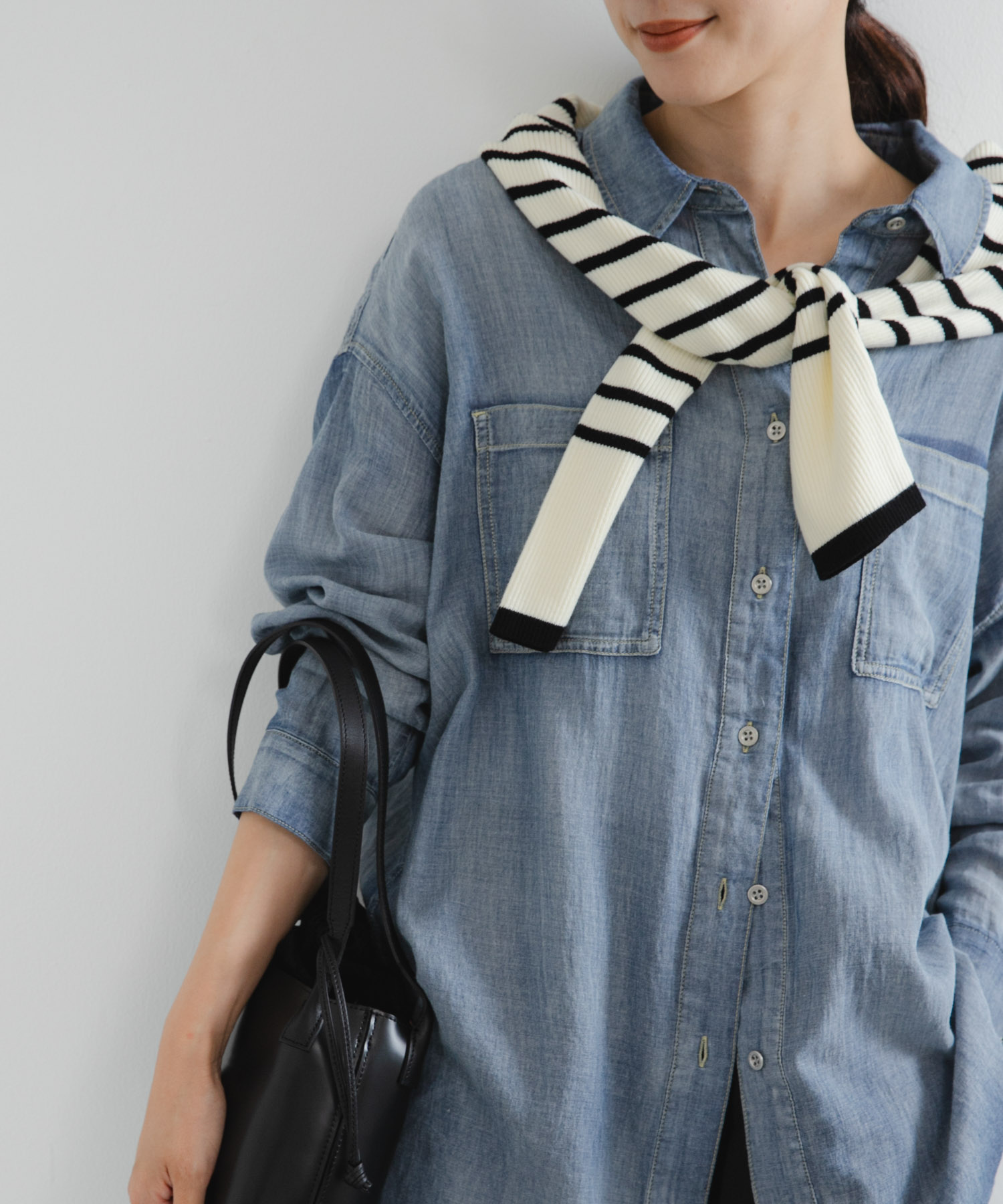 シンプルスタイルにプラスするだけで今年らしいレイヤードコーデになるのでとっても便利ですよ〜!