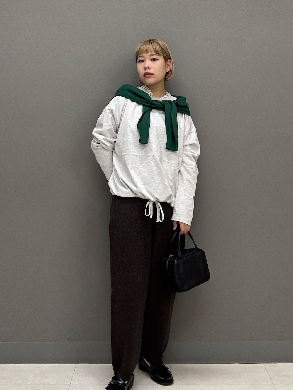 スウェットやざっくりニットに合わせるのも