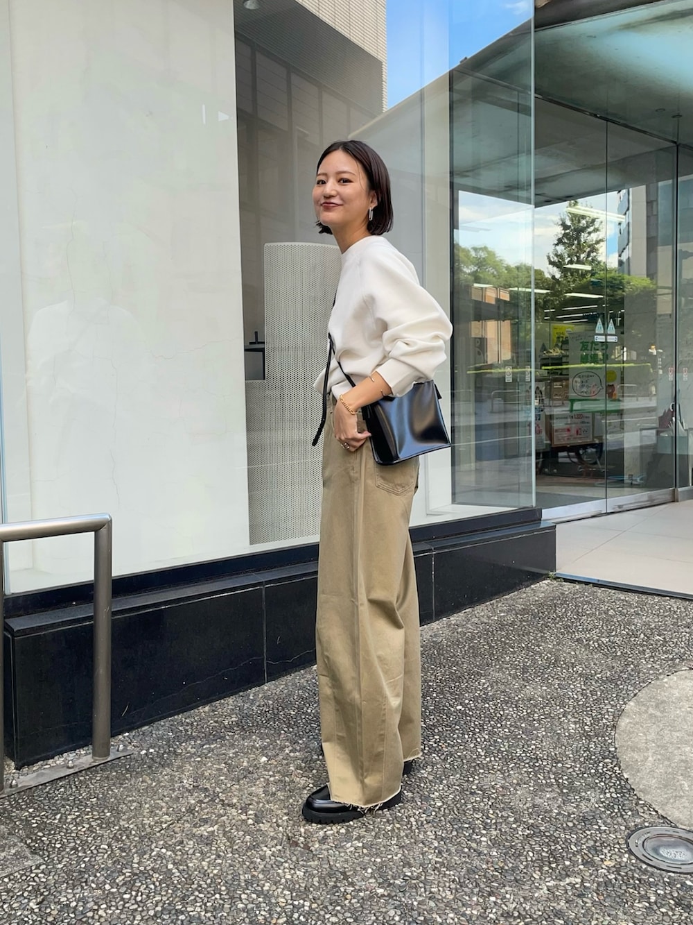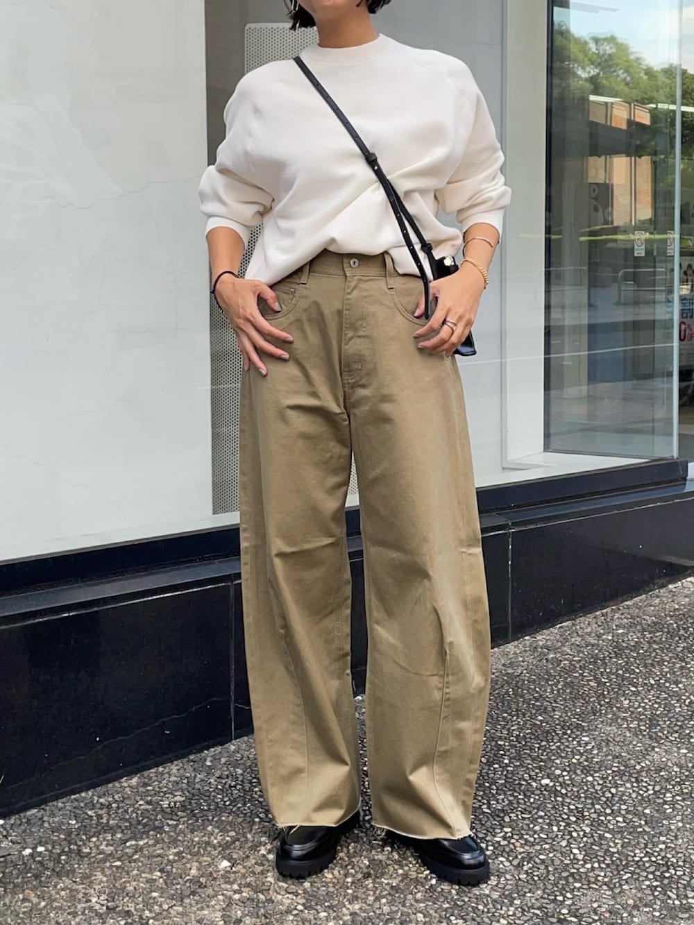 シンプルコーデ🤍カシミヤ混のニットはとても柔らかく着心地良いです🙂↕️