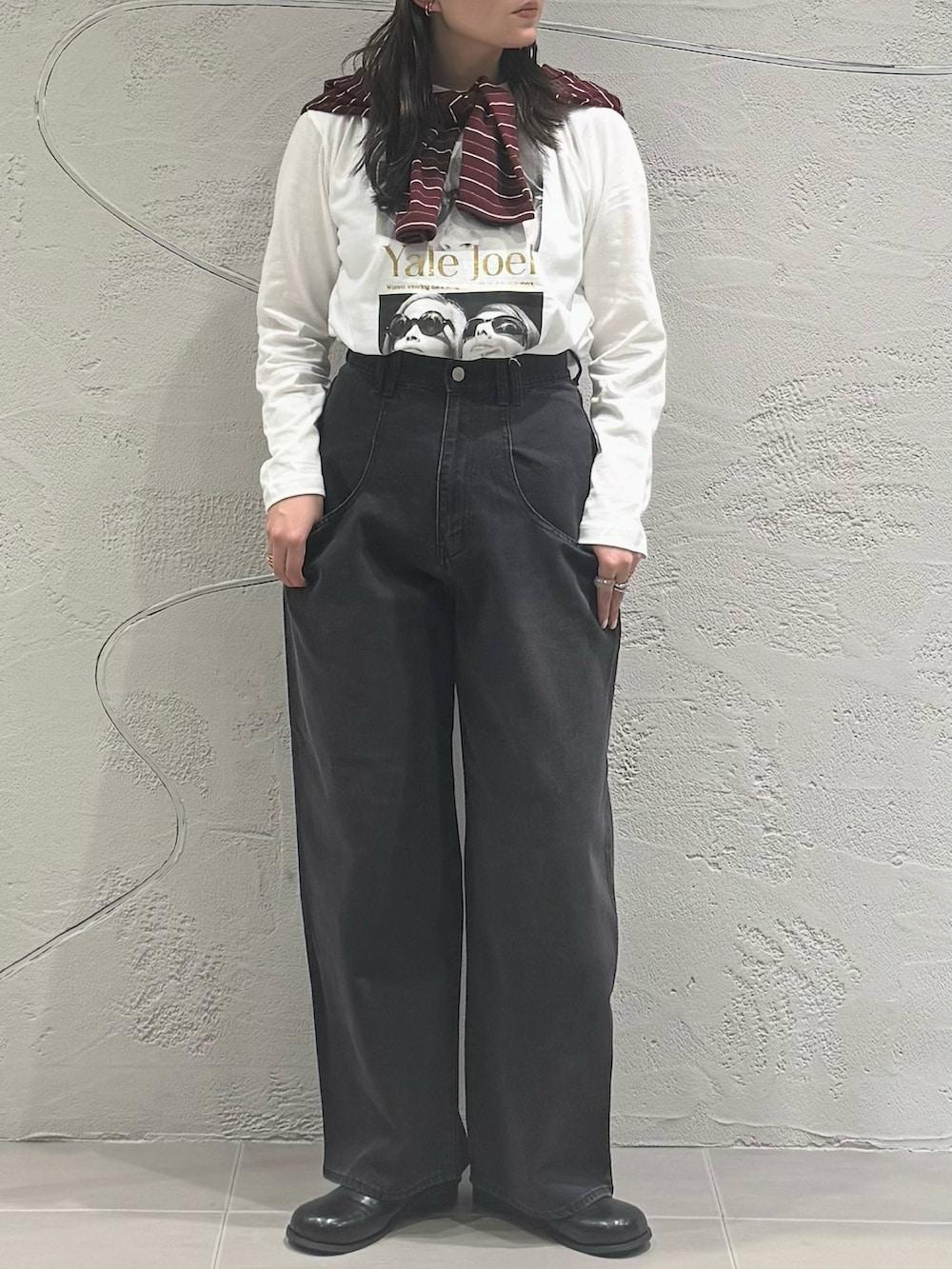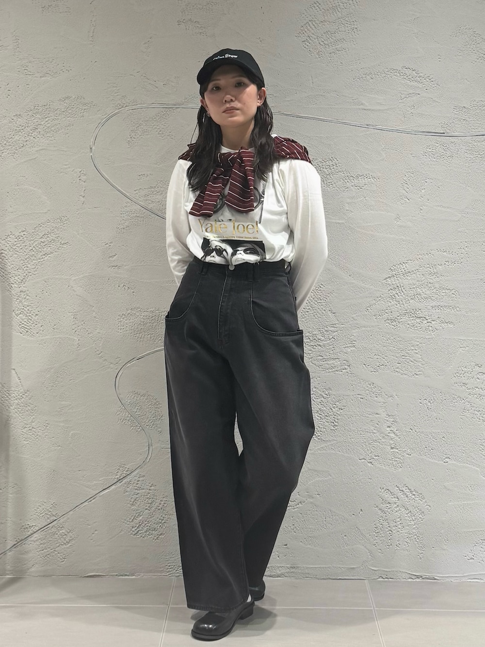 デニムだけだとシンプルだったのでボーダートップスを肩掛けでプラスし差し色に🩶❤️